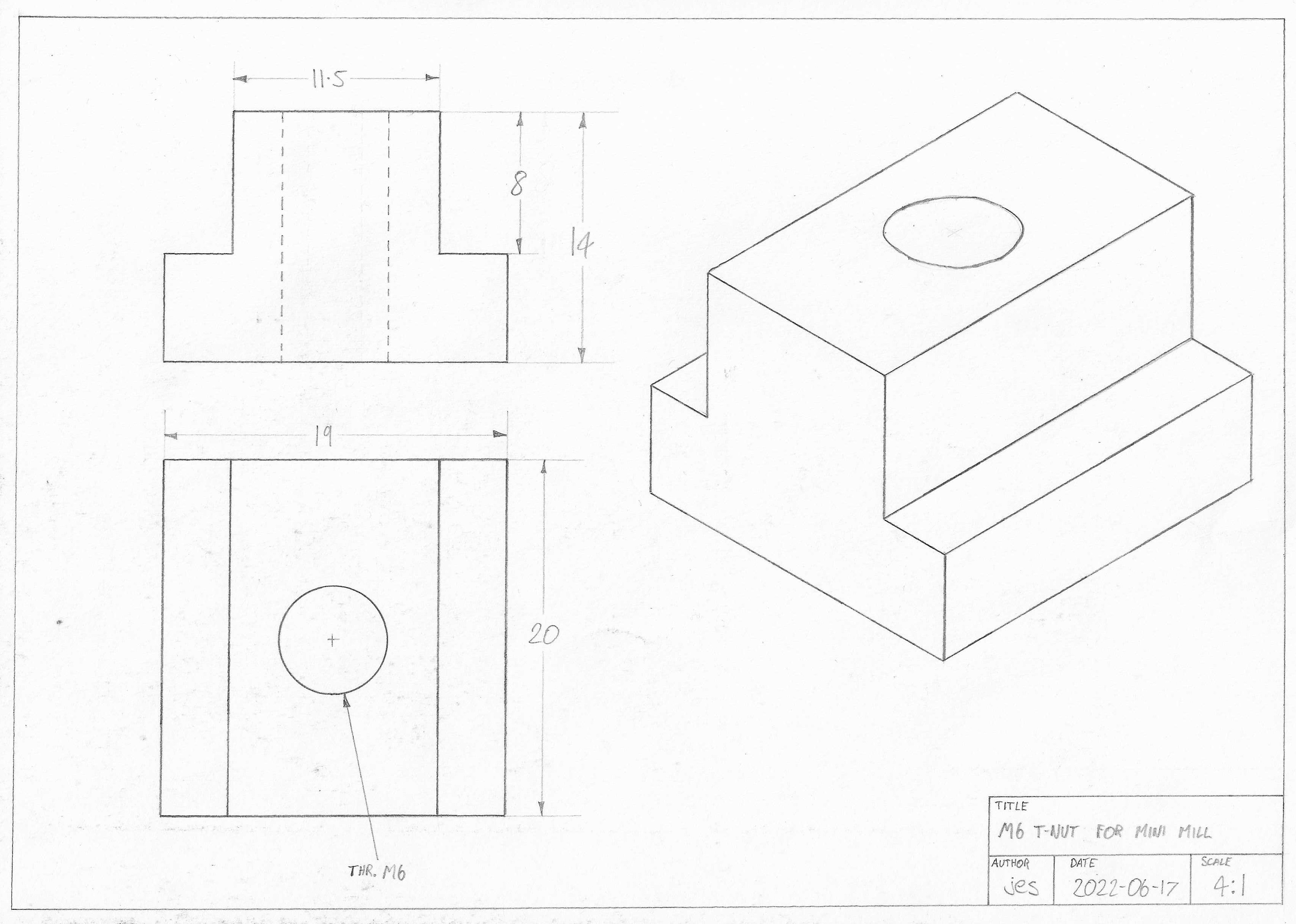 2022-06-17: M6 T-nut for mini mill
