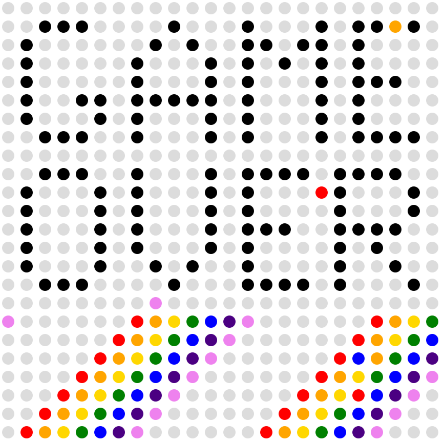 I wanted big numbers on the level transition screen, and big numbers are hard to draw by plotting pixels by hand, so I copied the numbers from this 11x7 font. I manually wrote them out as sprites, and then when I need to draw the level number, I just draw the sprites for the appropriate digits. It technically supports up to level 99 (i.e., up to 2 digits), but I don't know if anyone will ever get as far as level 10.