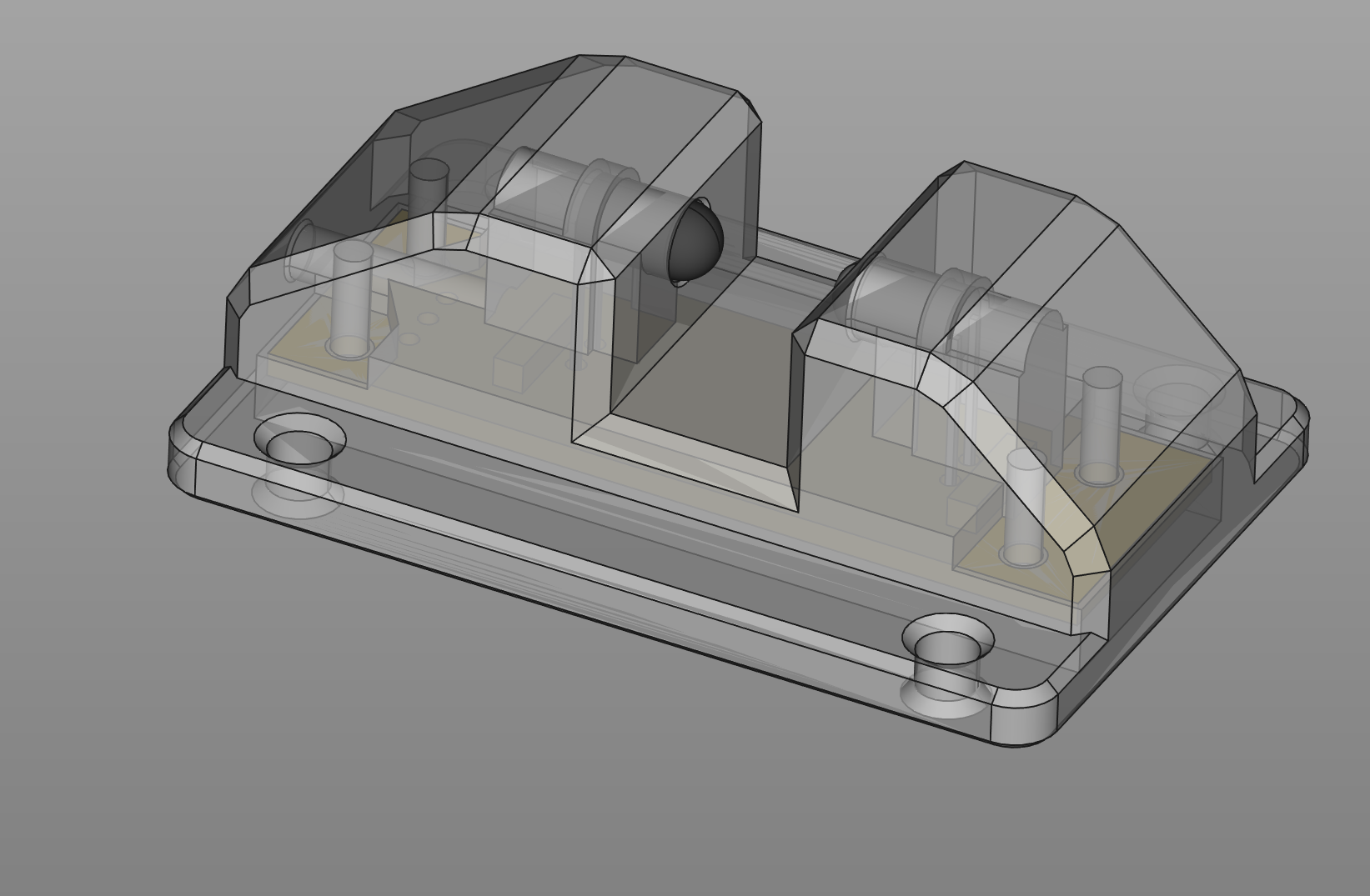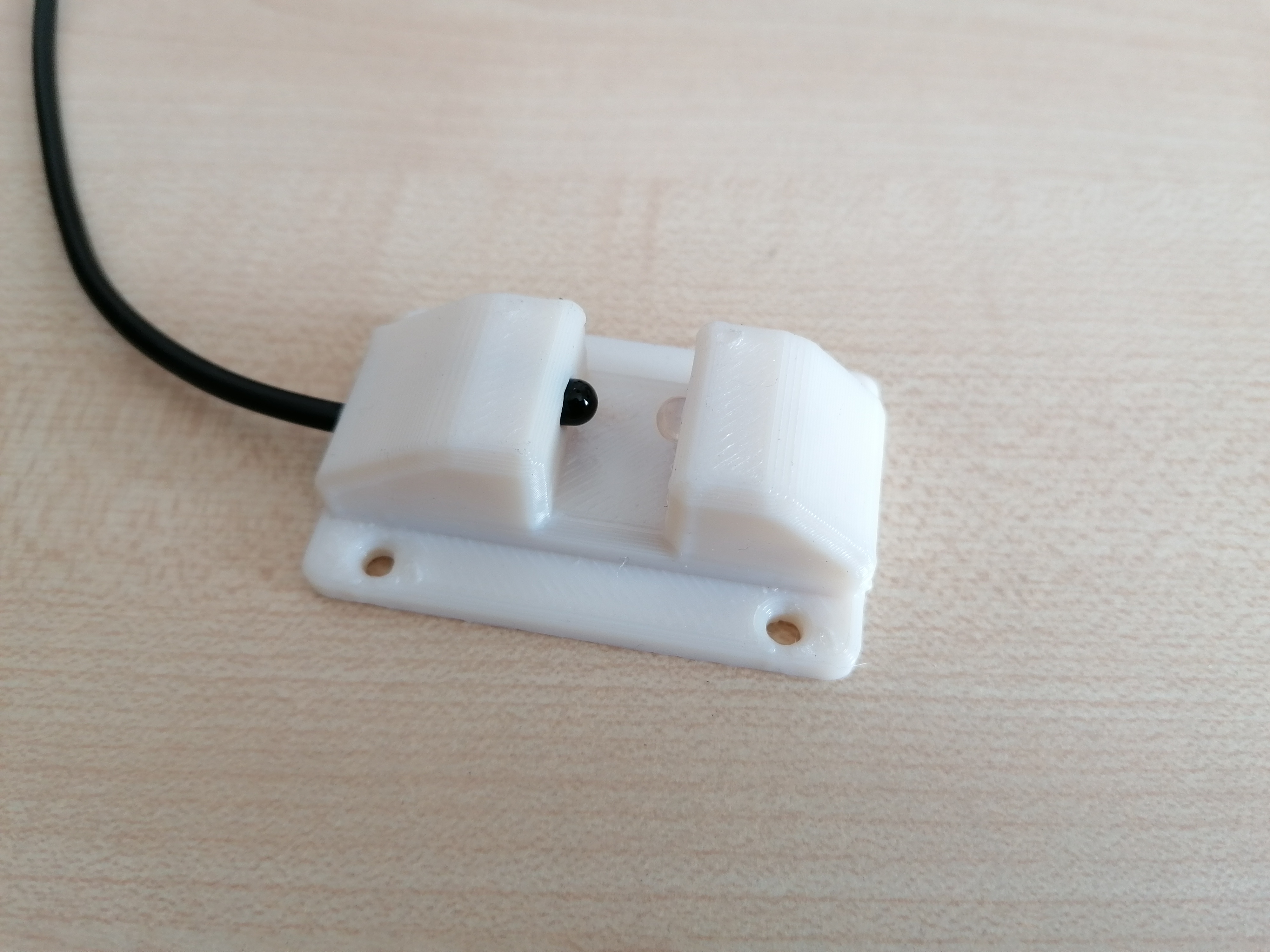 The mounting holes on the plastic housing will eventually be used to screw the sensor to a piece of material that will hold it in place near the engine.