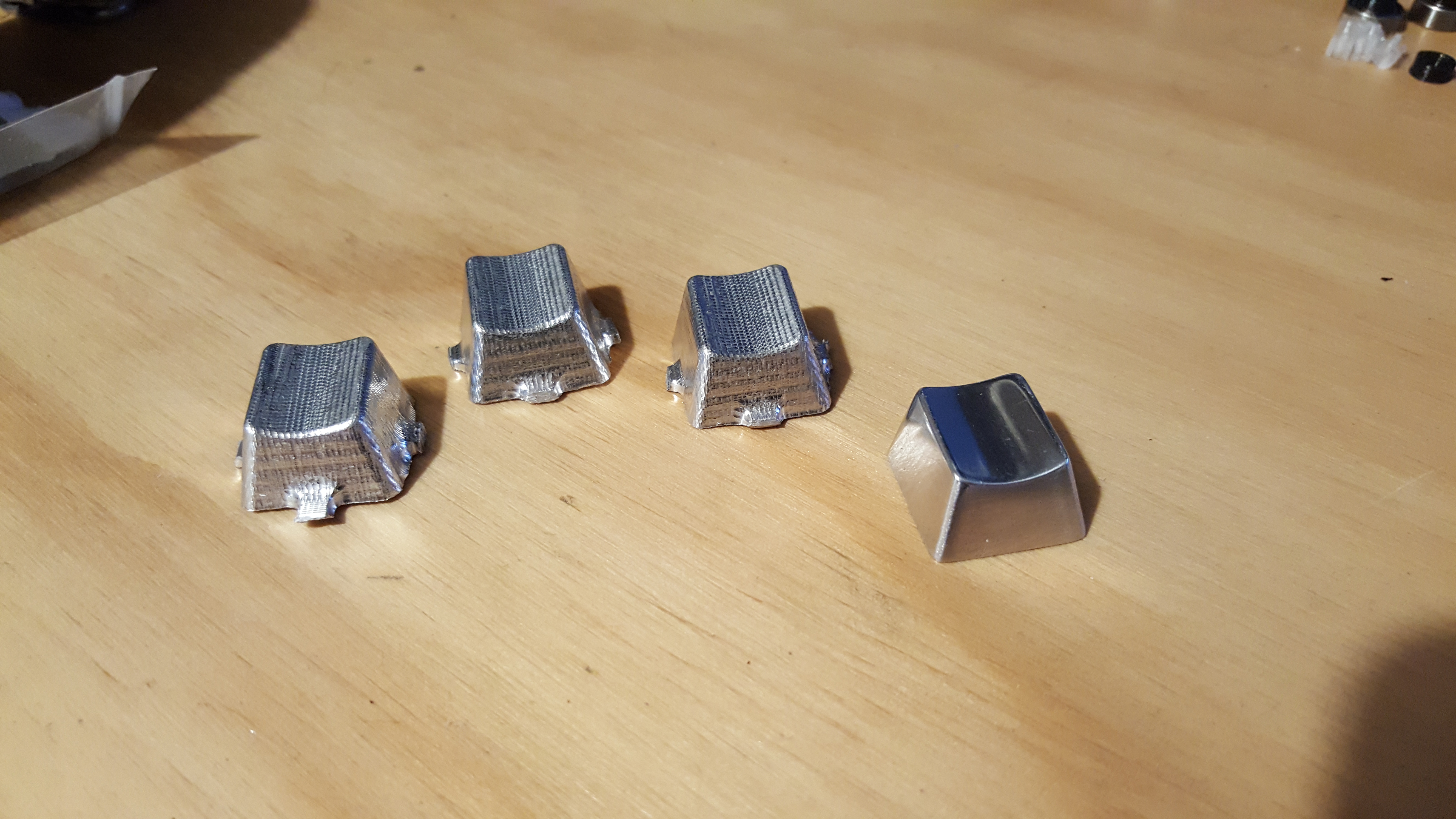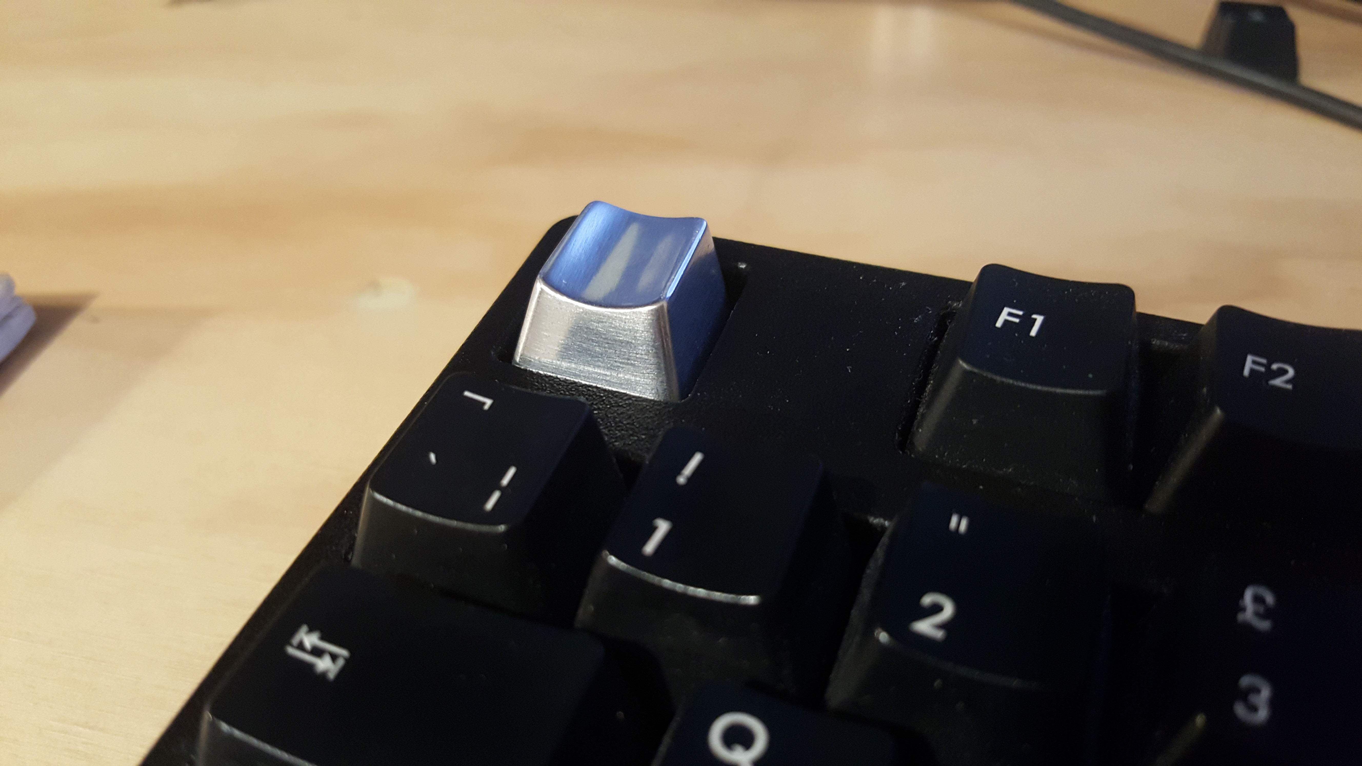 To make the keycap presentable, I first filed off the retention tags, then sanded down the tool marks starting from about 160 grit sandpaper and ending at 2000 grit, and then polished it with Autosol. I think I went up through the grits a bit too fast as there are still some visible sanding scratches, but it's good enough to satisfy me.