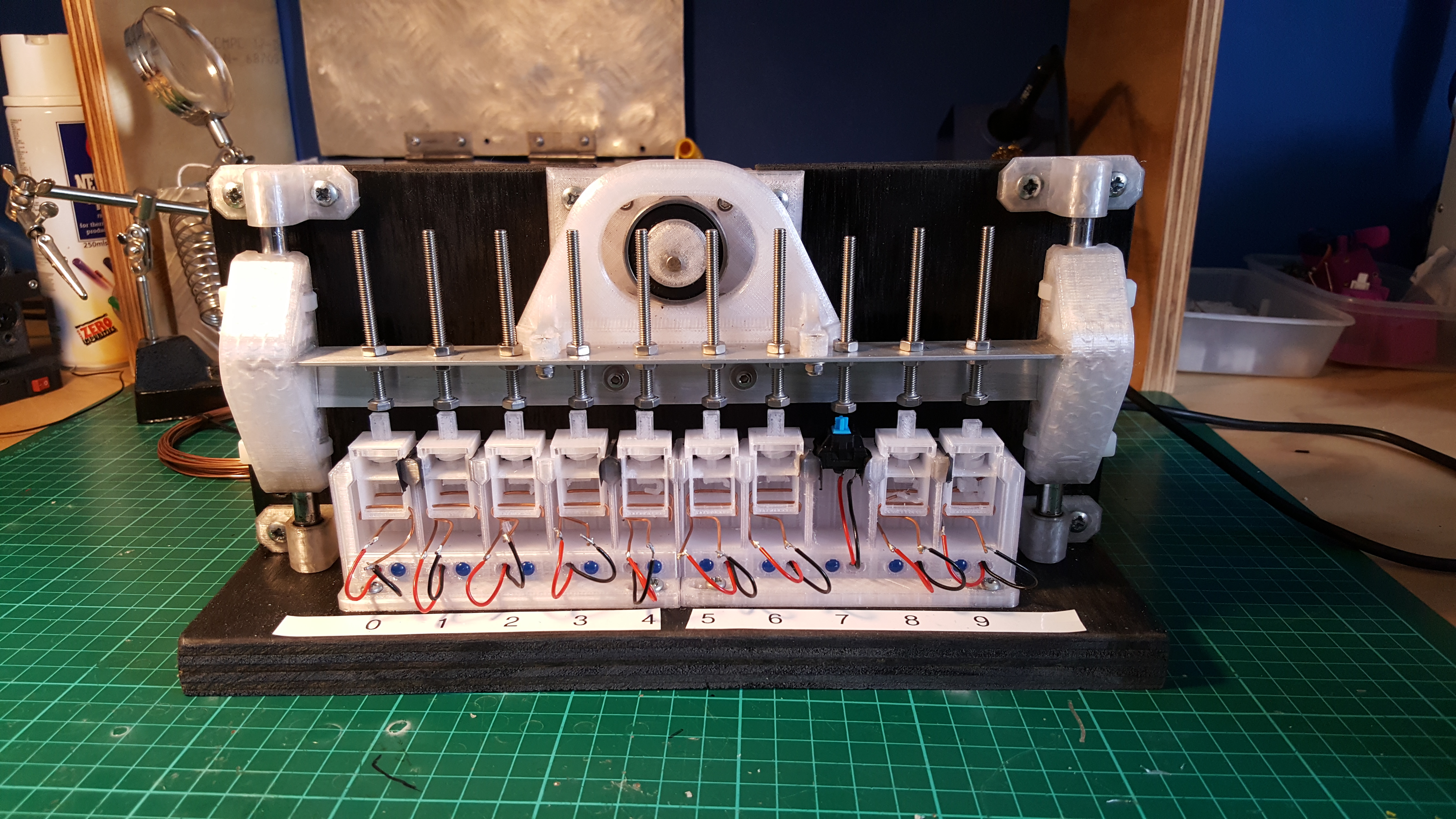 Just an update on the keyboard switch project. I've built the new 10-way testing machine, ran a (somewhat inconclusive) test to work out the best thickness for the leaf springs, and thought a bit on how I'm going to design the actual keyboard.