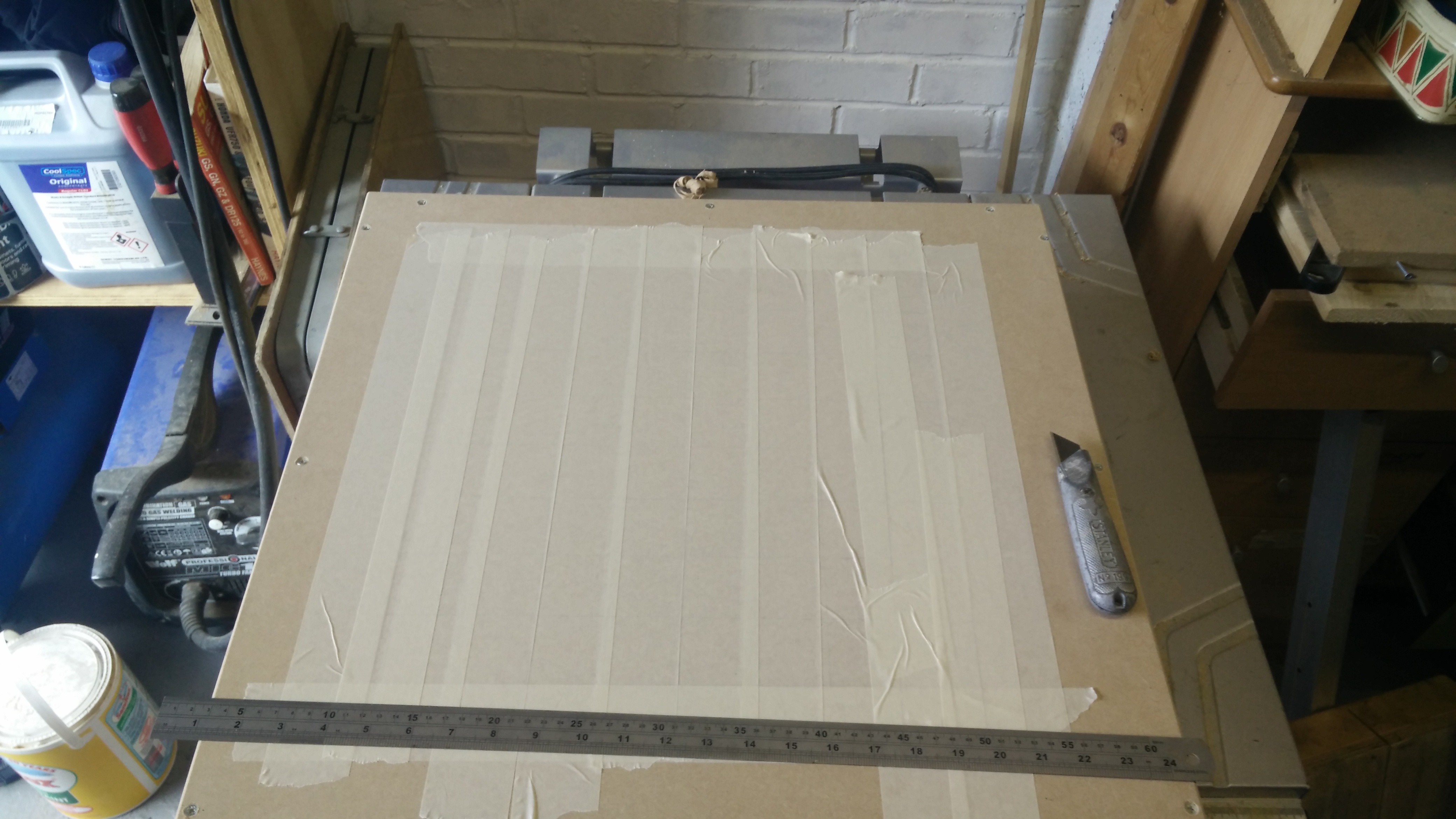 I first covered the board surface in masking tape.