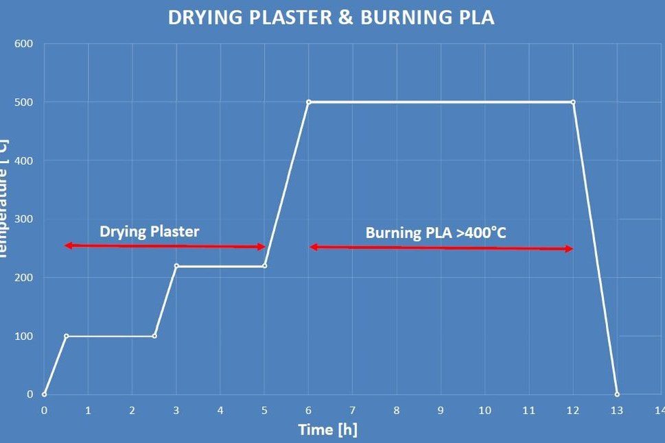 The next morning, I took the mould out of the furnace and everything seemed to have worked as expected: the plastic was gone, but the plaster was still hard. Great success!