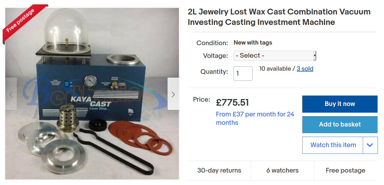 These are also quite expensive, but I also think I could build one quite cheaply, although centrifugal casting has the downside that if something goes wrong then it is liable to spray molten metal everywhere, which seems like it could be potentially hazardous. But I think it should produce much more force than a vacuum, so is probably superior.