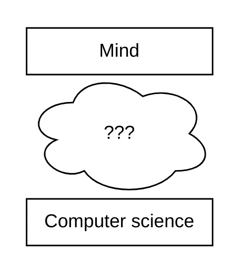 So let's skip all the hard work of explaining how neuroscience creates computer science (a worthy and interesting field of study, no doubt, but not the one I'm interested in right now). Let's assume that it is true that working upwards from neuroscience eventually reaches computer science and, given that we already have a way to implement computer science, reduce the problem to this: