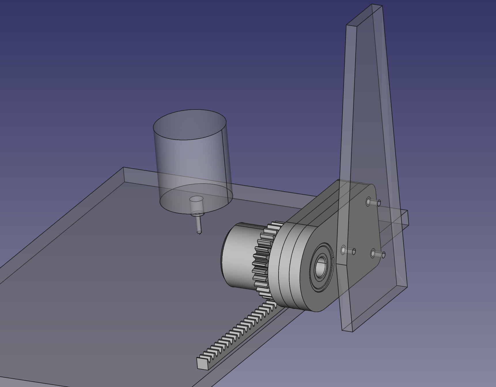 I took some measurements from the machine, modelled the important pieces in CAD, and then designed the rack, gear, and mounting plates to match: