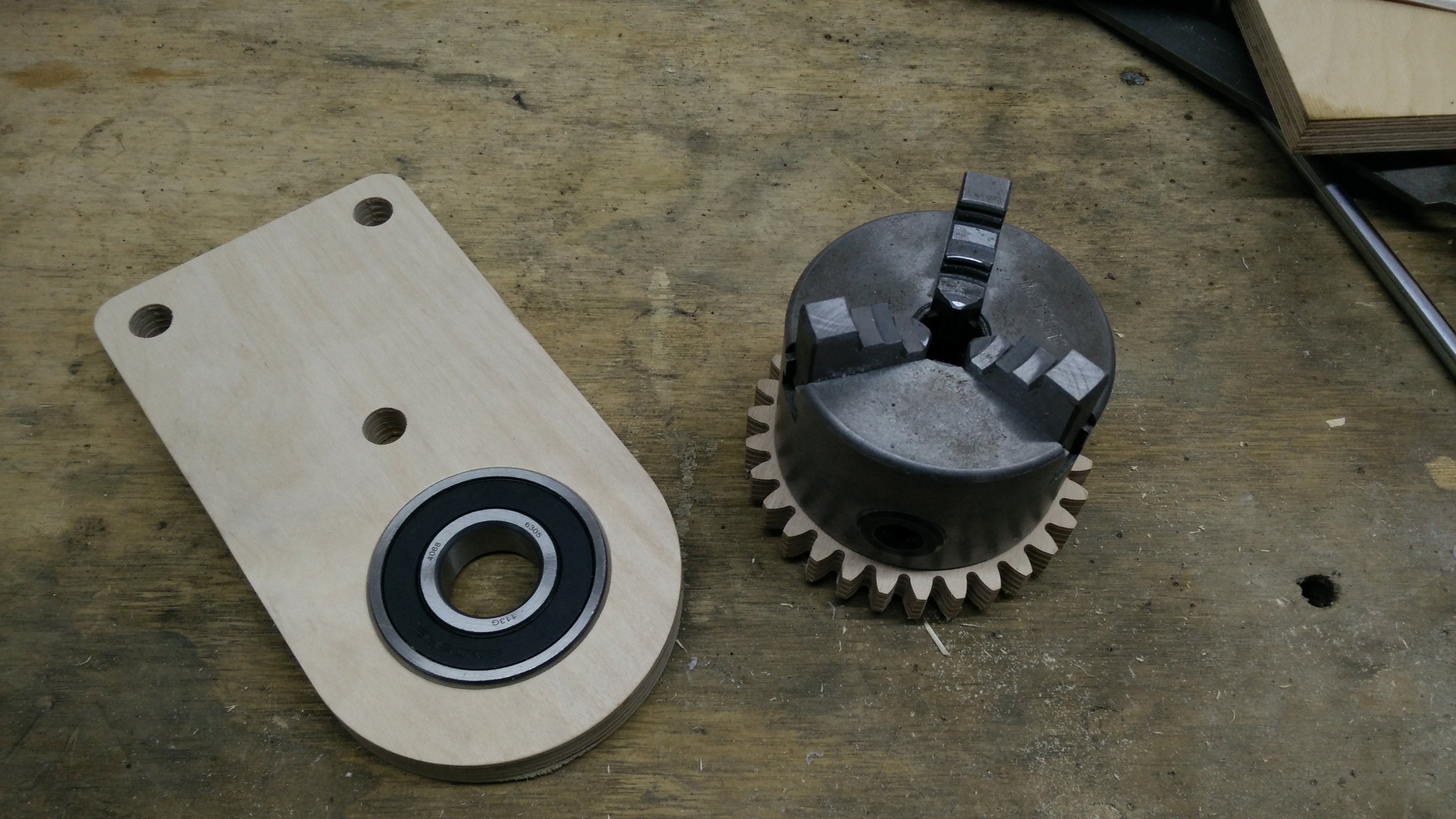 The gear has a step in it to fit the recess in the back of the 80mm 3-jaw chuck from my mini lathe.