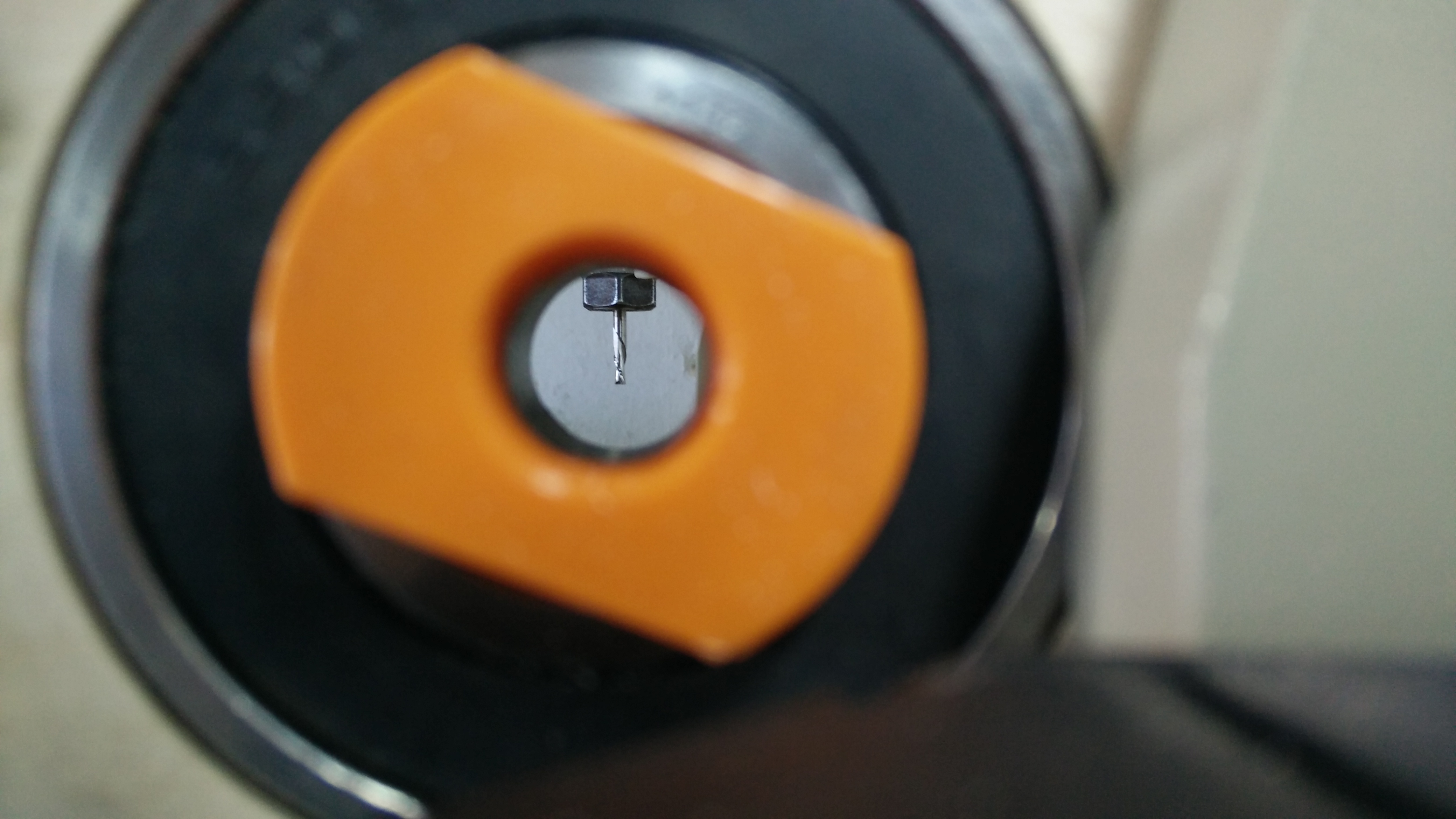 Finally (not pictured) there is a 3d-printed spacer behind the gear to provide clearance for the nuts holding the chuck, and a 3d-printed "bung" to screw up the end of the shaft to prevent it from falling out. Ideally there would be a spacer between the 2 bearings but I had already pressed them in by the time I thought of this. If this proves problematic I can always knock one of them back out and fit a spacer in future.
