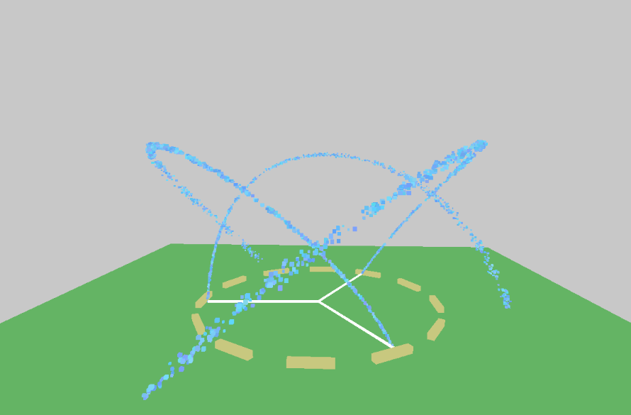 It's not super easy to control (the angle controls, in particular, are confusing) but you can make the jets loop around and return to the nozzle they came from, or all cross in the middle, or do several spirals before returning to the ground, etc.