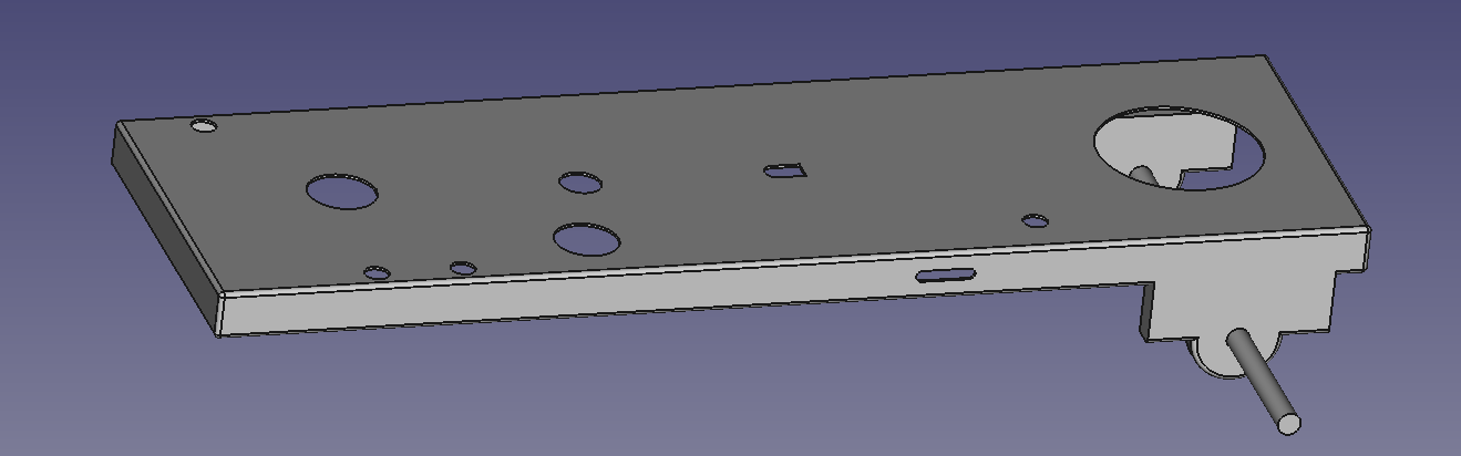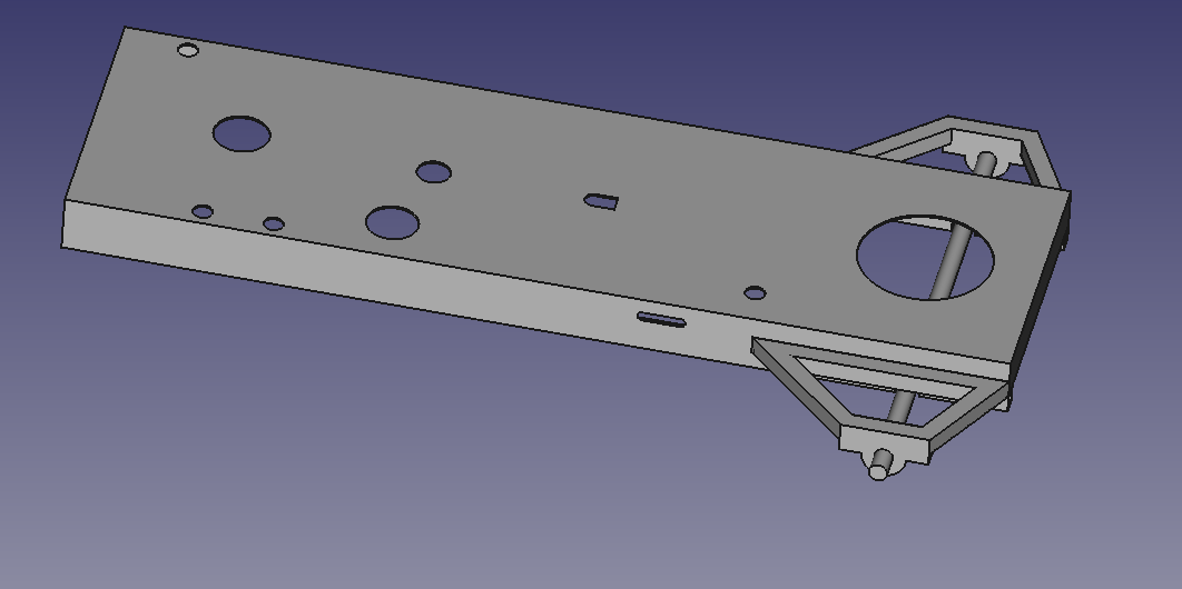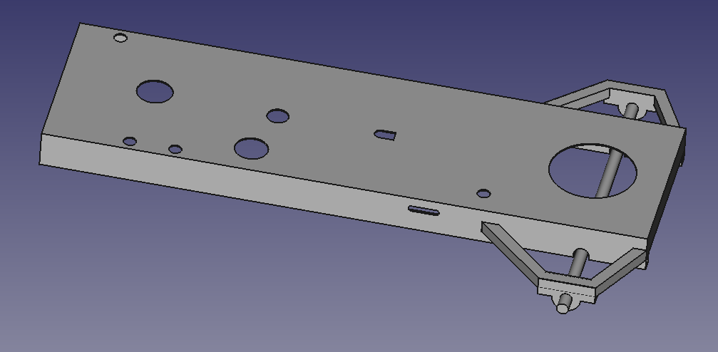 I started by measuring the key parts of the existing chassis and modelling it in FreeCAD. Most of the chassis is made of 3mm steel sheet, and the rear axle is 25mm steel round bar.