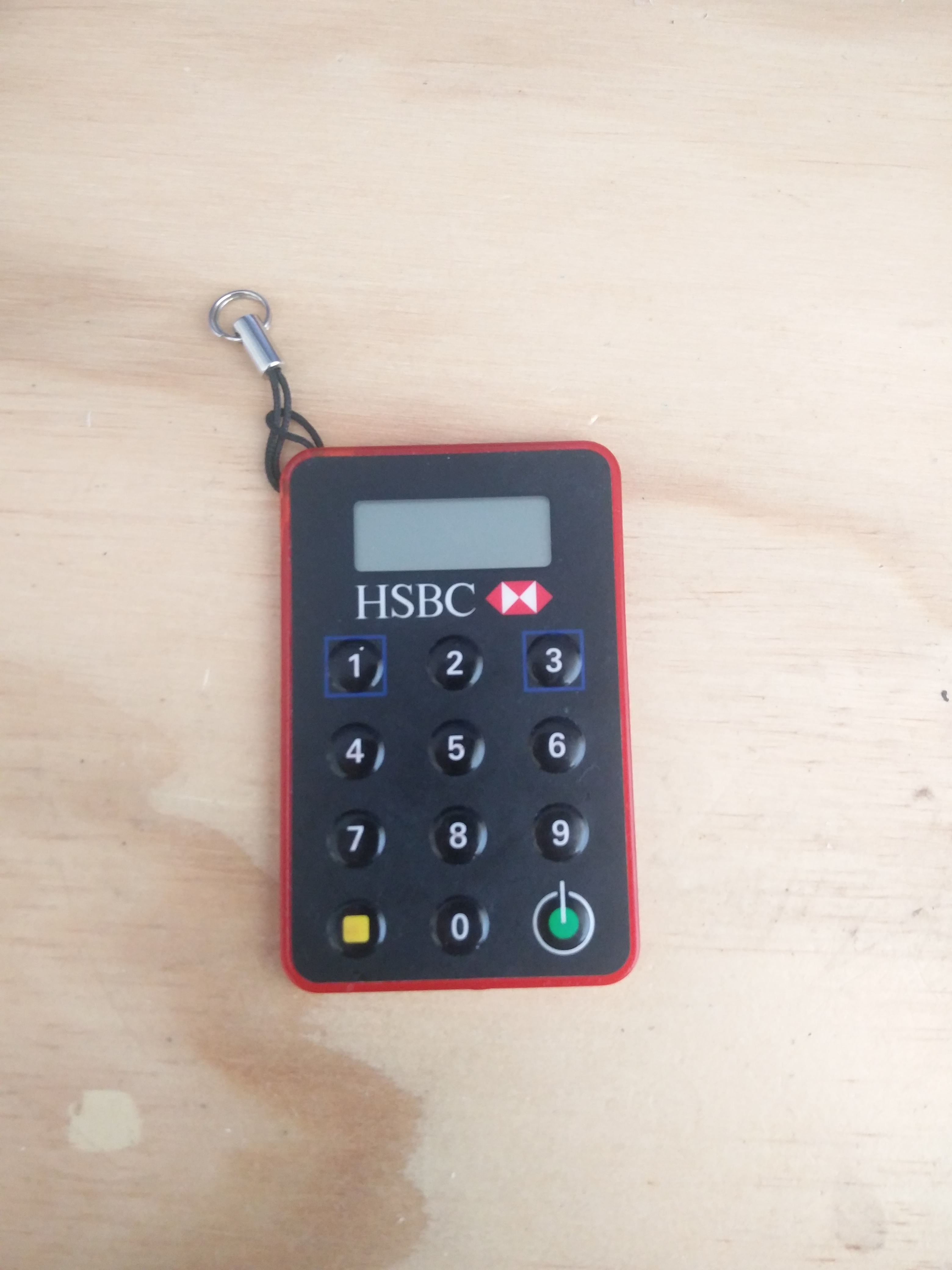 You've probably seen an HSBC SecureKey. It's a 2-factor authentication device for online banking. I was given one because the previous owner had started using the bank's smartphone app and no longer needed the SecureKey. It looks like this: