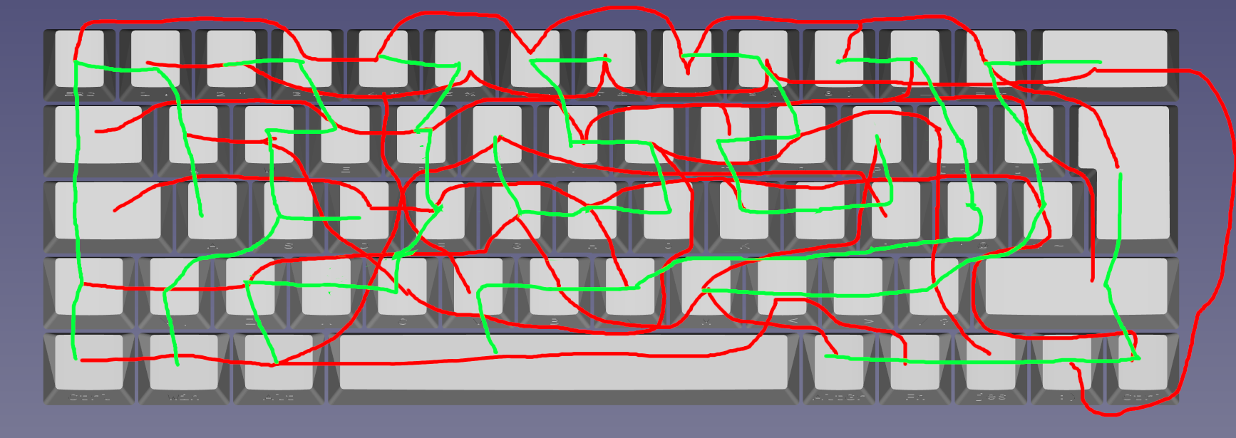 In hindsight, I am not sure whether I regret hand-wiring the keyboard. I toyed with the idea of getting a PCB made up that I could directly solder my switches to. It would certainly have made it easier to put the keyboard together, but I thought outsourcing the manufacturing of a PCB kind of takes the edge off making your own switches...