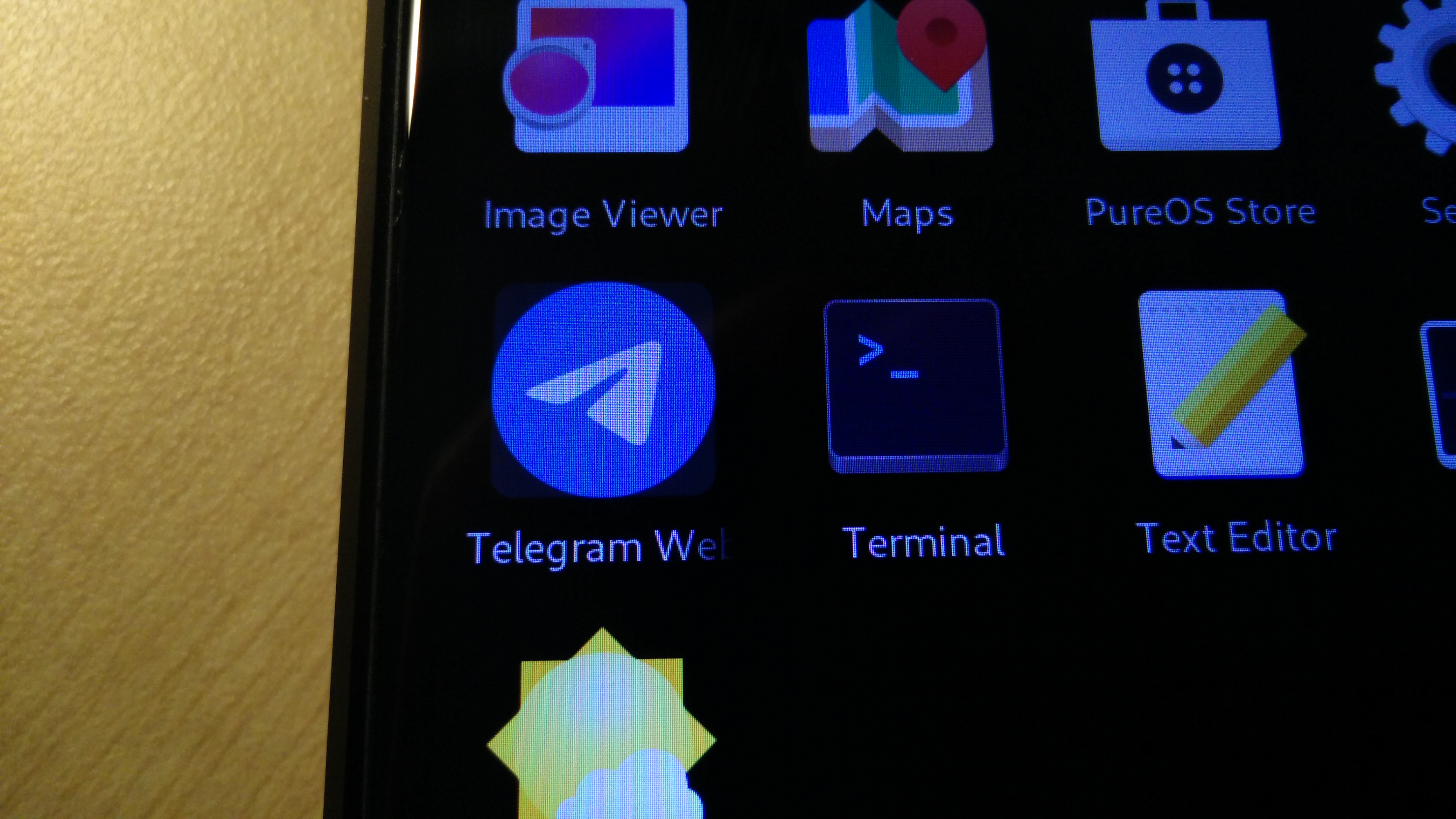 There is no Telegram app in the PureOS store, however there are a few in apt. I wonder if they will actually work on the phone screen or if they're just normal desktop programs. I installed telegram-desktop with apt and it automatically shows up in the app launcher, which is a good sign, although it doesn't work.