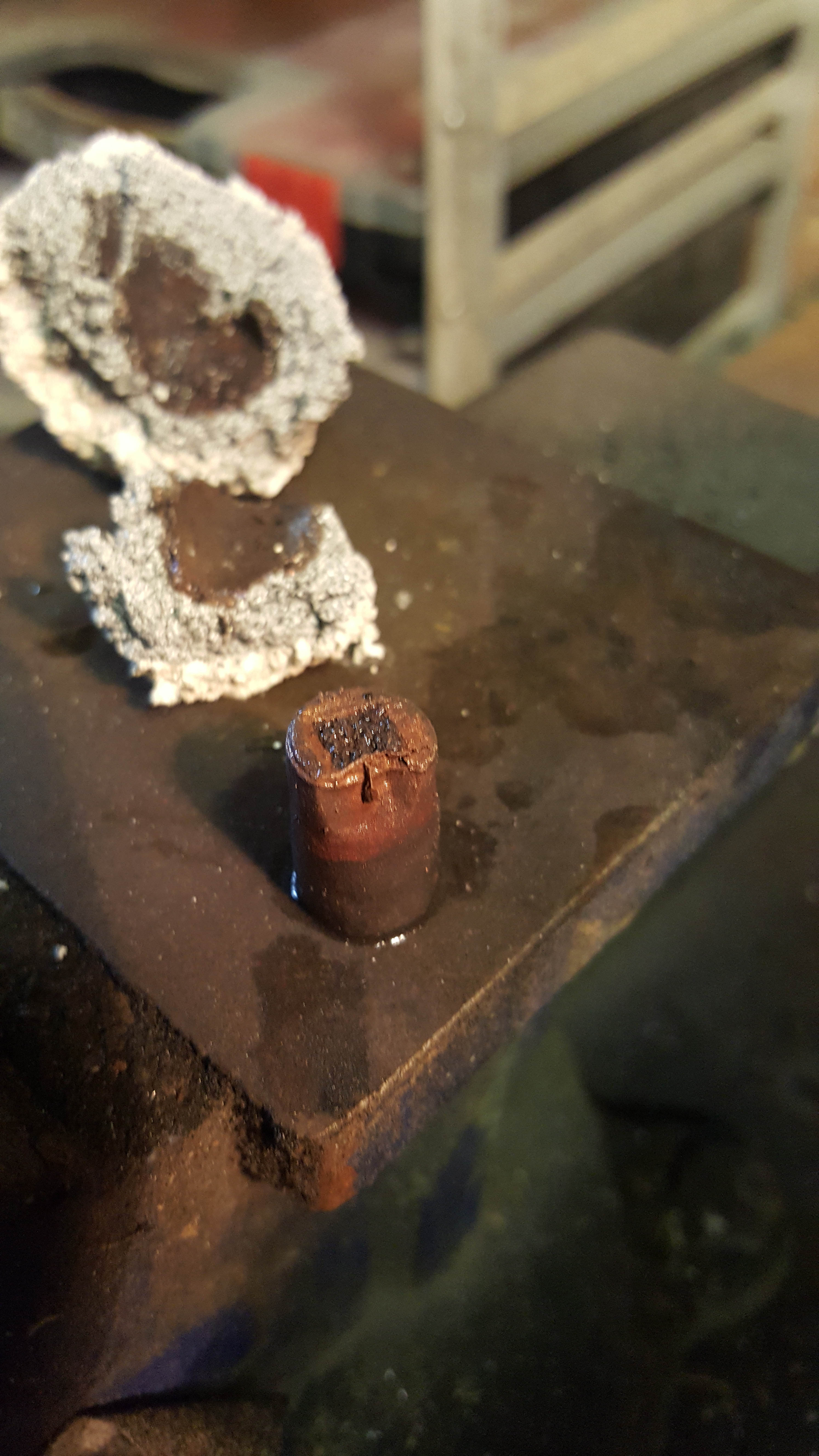 I coated my "green part" in this charcoal plaster, inside a piece of metal tube, and left it to set.