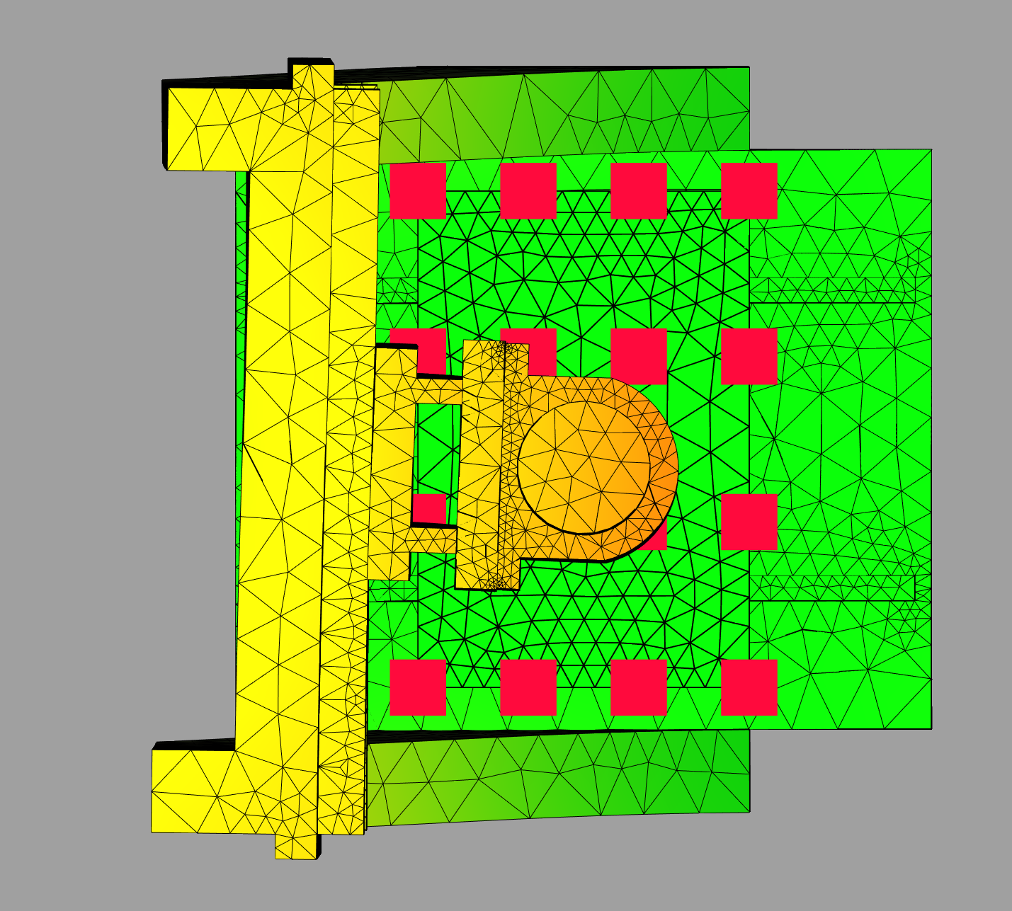 (This was simulating a 1000N force pushing the tool in the negative X direction, which is towards the bottom of the image, and the deflection is amplified by 500x to make it easier to see).