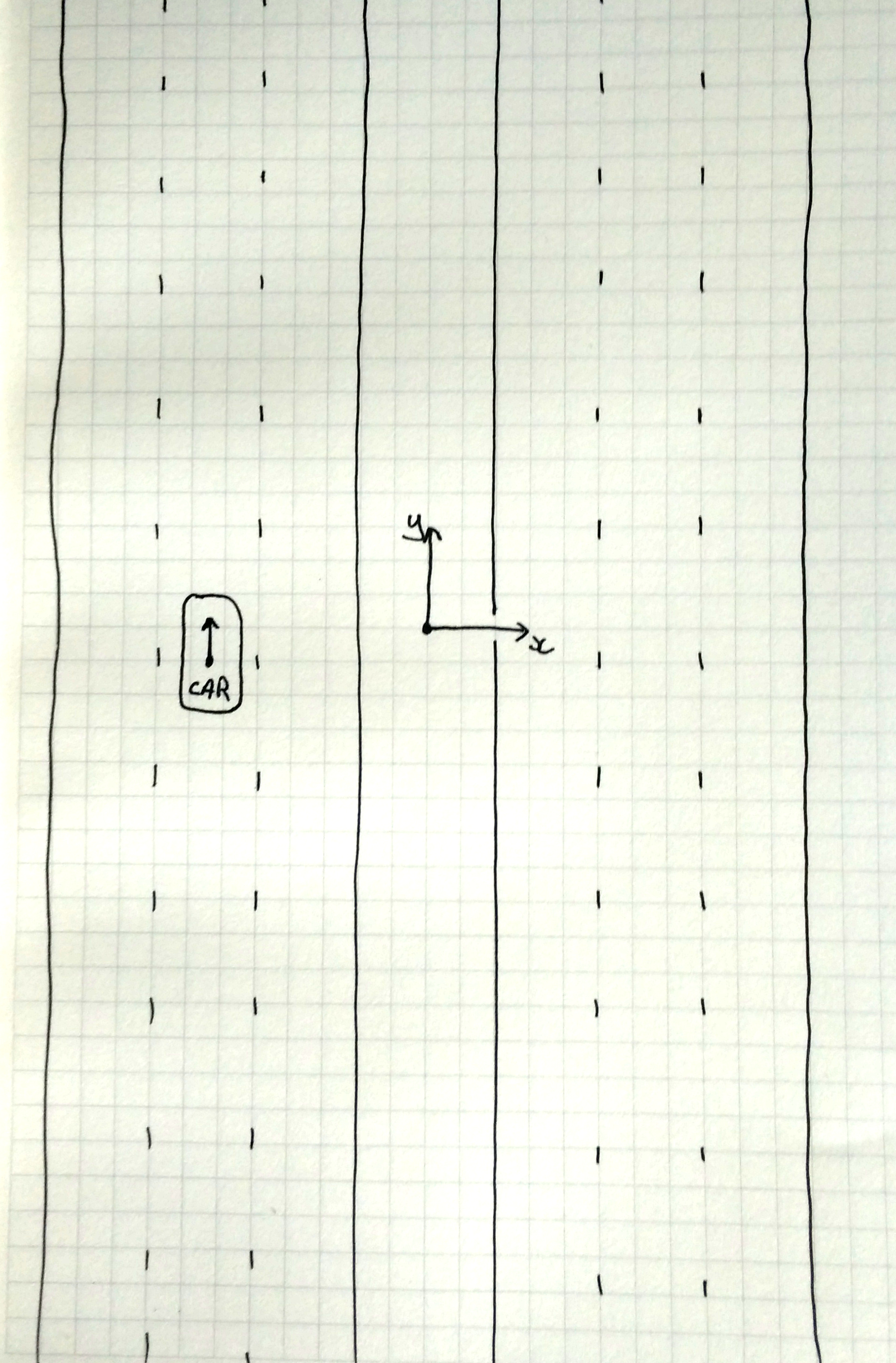 Each car has a 2d position vector and a y-axis velocity (cars on our side having positive velocity, and cars in the oncoming carriageway having negative velocity).