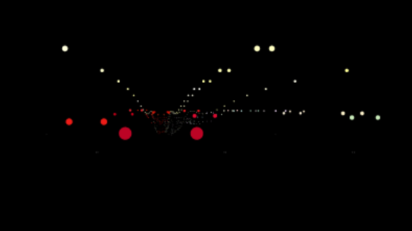 Car occlusion: Cars also are not just magical floating orbs, they have volume and are opaque. This would be slightly harder than street light occlusion. Probably a first pass would be to render a black cuboid behind each car's lights, so that the cuboid blocks out anything that would be blocked by the car. This is inconvenient because currently we can only render circles.