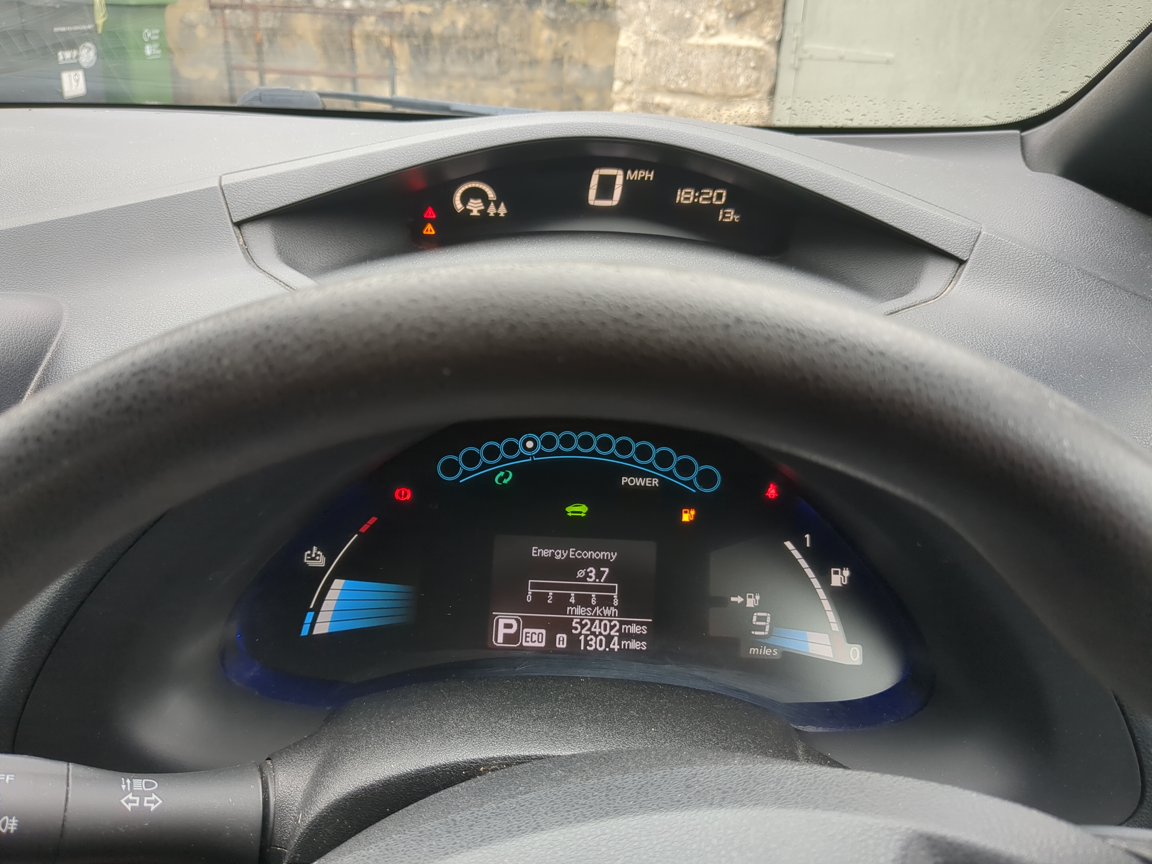 Anyway, not put off by the bad news from the trial run, I committed to driving the car to work today. The plan was that if it broke down on the way home, I would quietly sell it and buy another Micra. I left the car on charge right up until the point I left, because I didn't want to take any chances. I left it in "eco" mode all the way, and I even picked up lunch the night before so that I wouldn't have to stop en route, which would cost me precious metres of range.