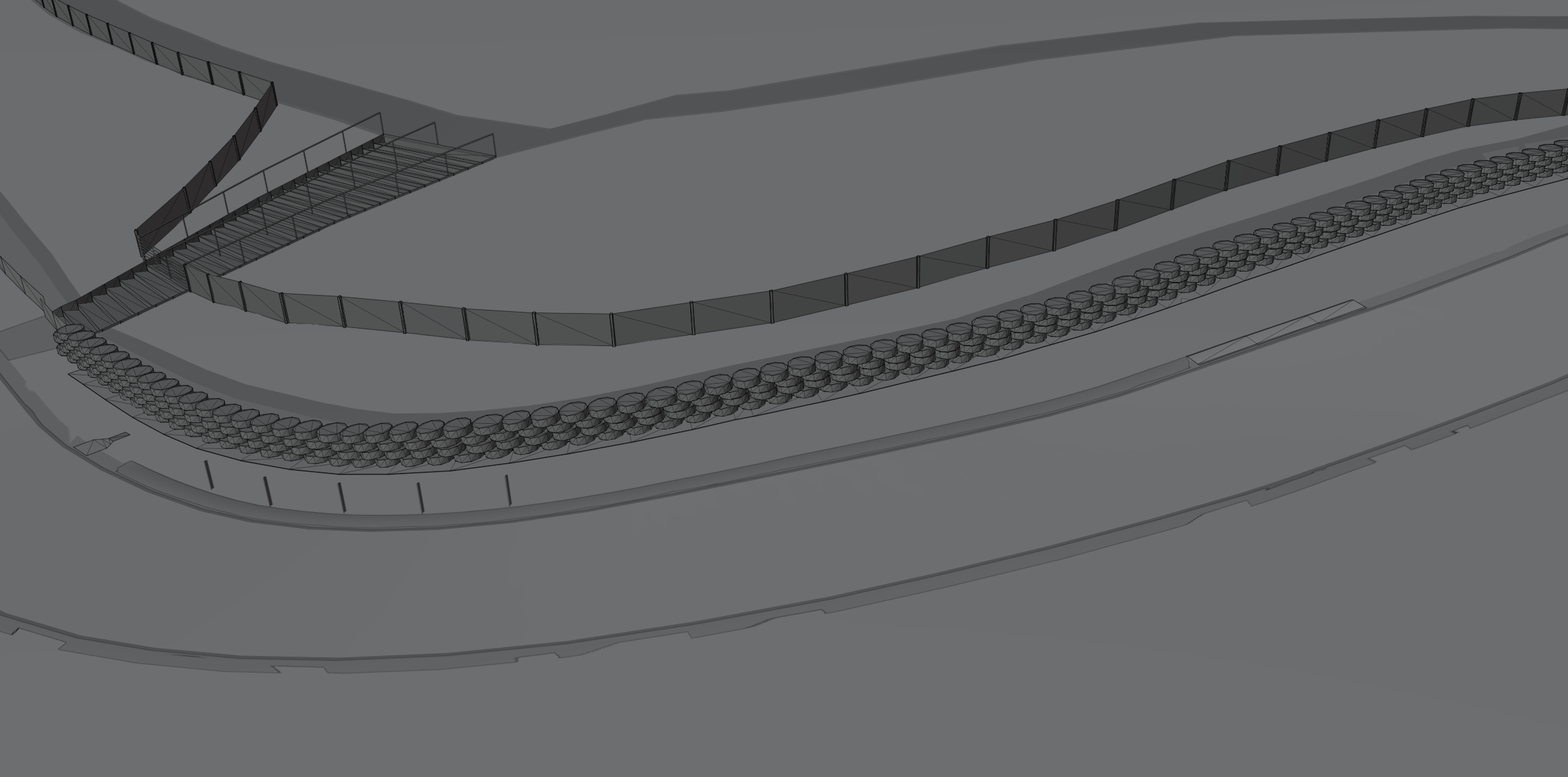 The Cadwell Park track had about 1.5M vertices at first. I reduced this down to more like 400k by getting rid of the 3-dimensional grass, spectators, vehicles parked alongside the circuit, most of the buildings, and half the trees. More than 50% of the remaining vertices now are in the tyre walls, because every single tyre in every single wall is modelled as a separate 10-sided cylinder, which adds up fast considering they line almost the entire circuit on both sides and are stacked 4-high. I probably want to either delete the less-important tyre walls, or replace them with something simpler. Not quite sure on the easiest way to do that, but something to keep an eye out for.