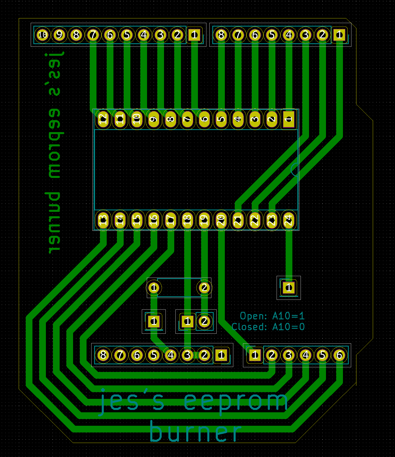 Silkscreen is not really important for the EEPROM burner, but I'm keen to be able to put writing on the backplane so that I can label the signals, so I thought I'd test it out on the EEPROM burner.