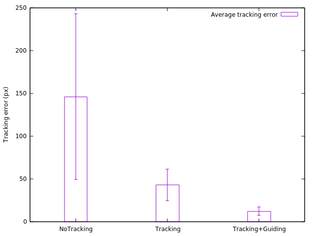 Fig. 10: Tracking error with tracking off versus on versus auto-guided (cf. fig. 3).