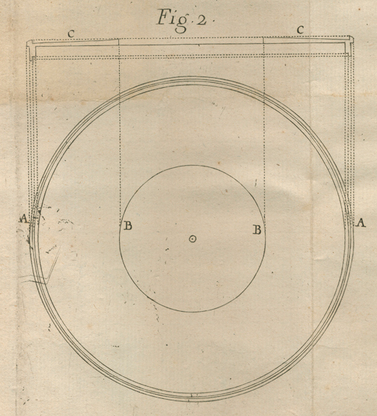 AA is the Brass Edge, BB the Hole in the Middle of it, and CC is a Section of it. This Brass Edge is supported by six Pillars, and their Places are represented in Figures 13 and 14, by six Circles aaaaaa.
