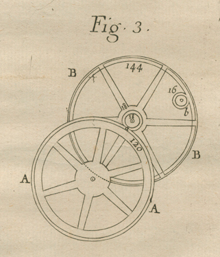 Each Turn of the first Wheel (or Fusee) is 4 4/7 Hours; so 5 1/4 of its Turns is just 24 Hours; and 6 1/4 is 28 4/7 Hours; and 6 9/16 Turns equal to 30 Hours.