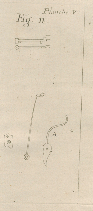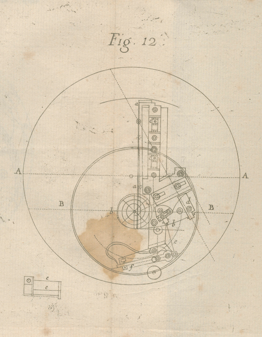 Is the Detent, which is to stop the Balance before the Watch be down. It turns upon a Centre at t in Figure 14. A is the Locking-spring.