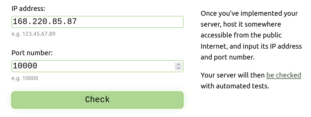So in my case we'll put 168.220.85.87 and port 10000 into the checker form: