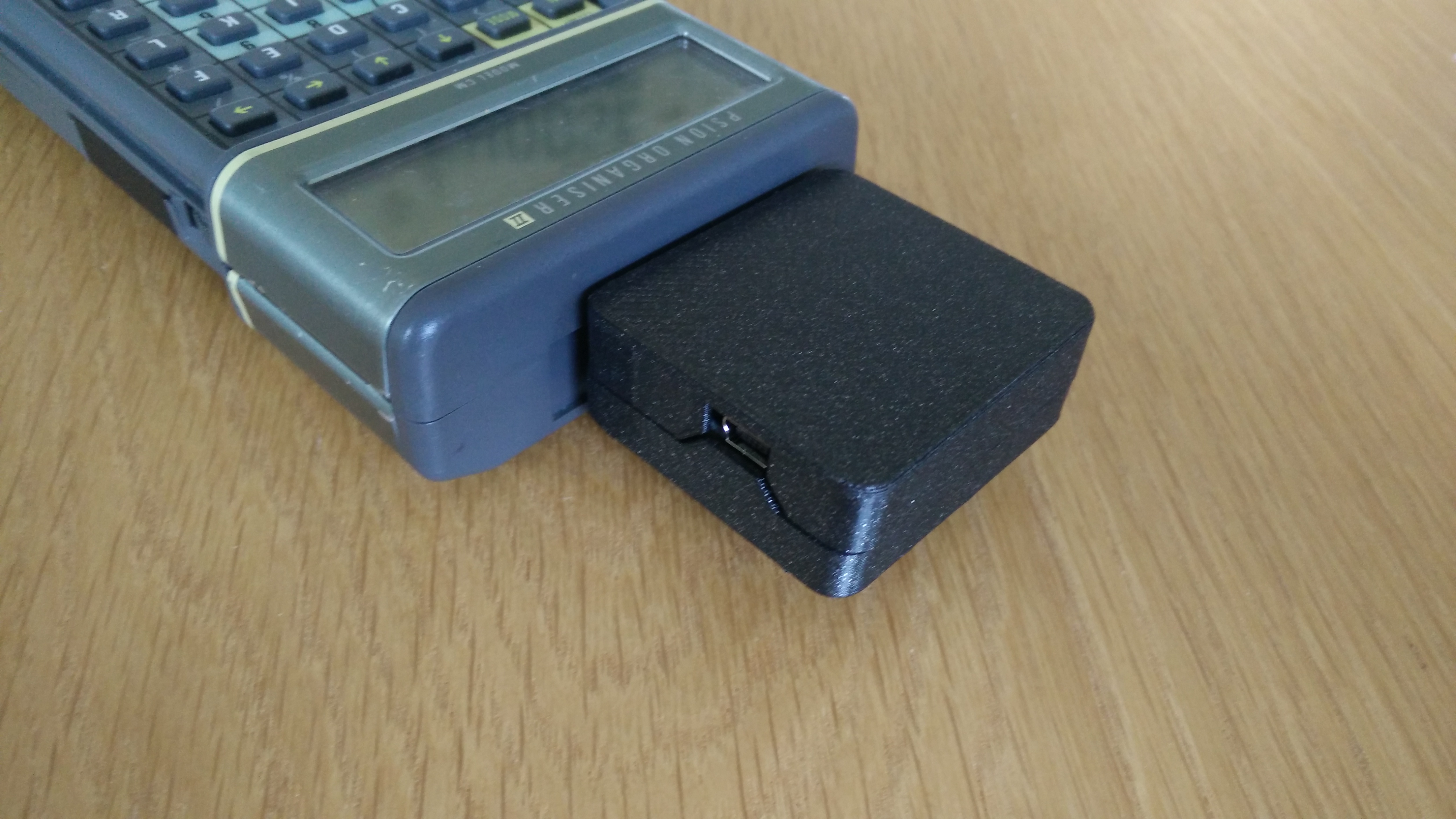 This is what the Psion looks like, with my homemade comms module plugged in: