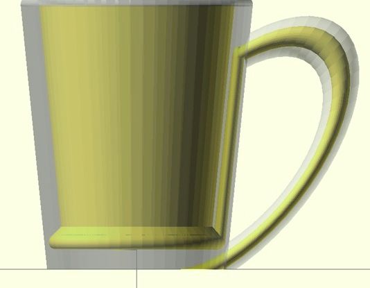 I'm pretty much happy with the performance of this mug, but I don't like how it looks. The handle looks rather contrived, not nearly as elegant as the one in tobr's sketch, and I don't like the tesselation pattern on the surface: