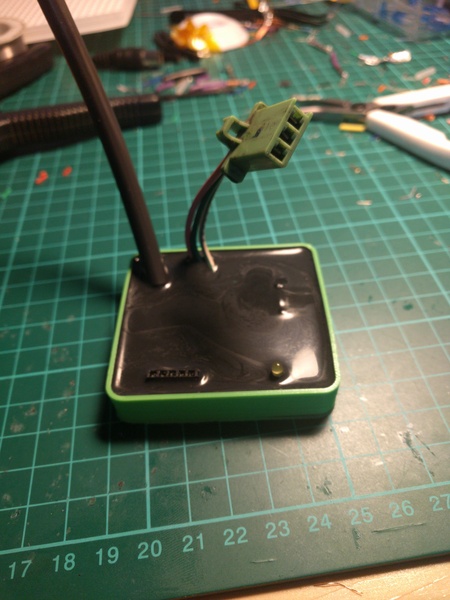 It's in a 3d-printed case, and I filled the case with black polyurethane resin to keep everything nice and secure against vibration and water ingress: