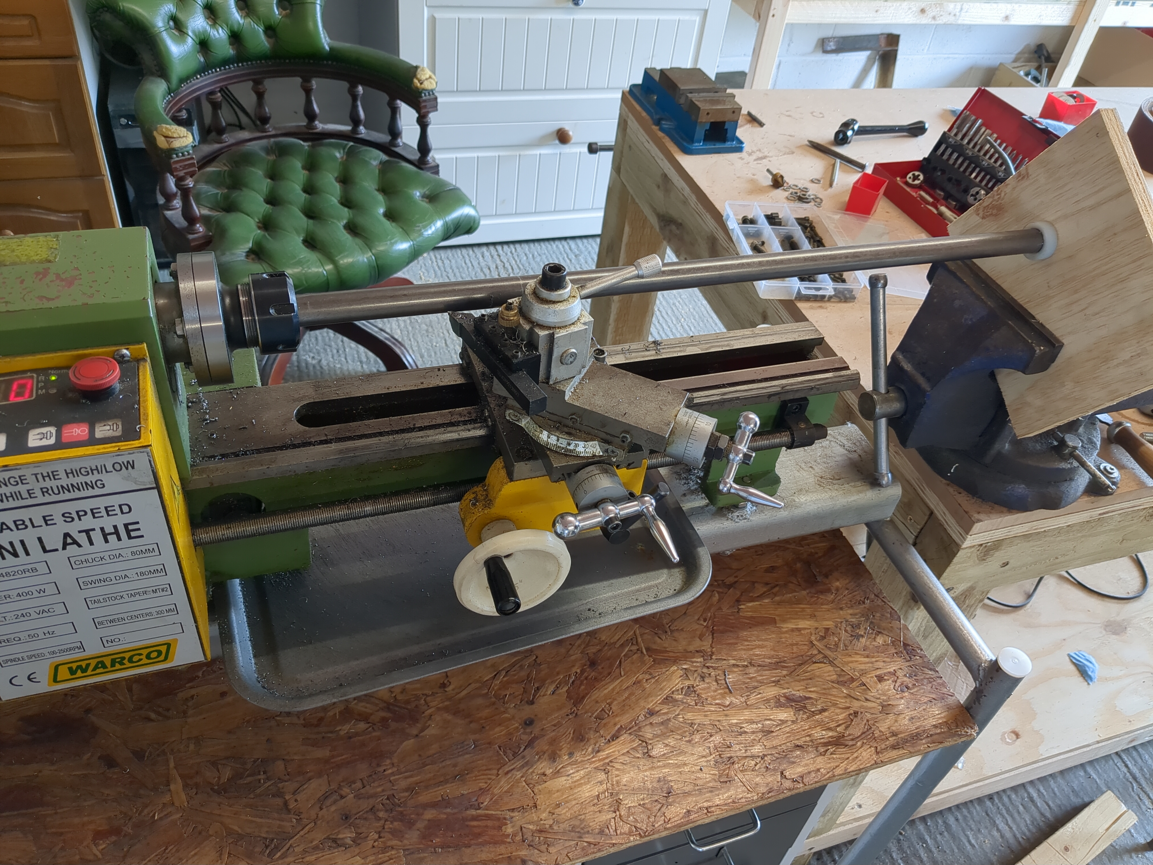 I thought this would be easy because I was labouring under the misapprehension that a 20mm shaft would fit through the spindle bore on my mini lathe. It does not! It's very close, but it doesn't fit. Possibly you could bore out the spindle bore slightly so that it would fit, but I didn't think of that at the time, and probably it is hardened.