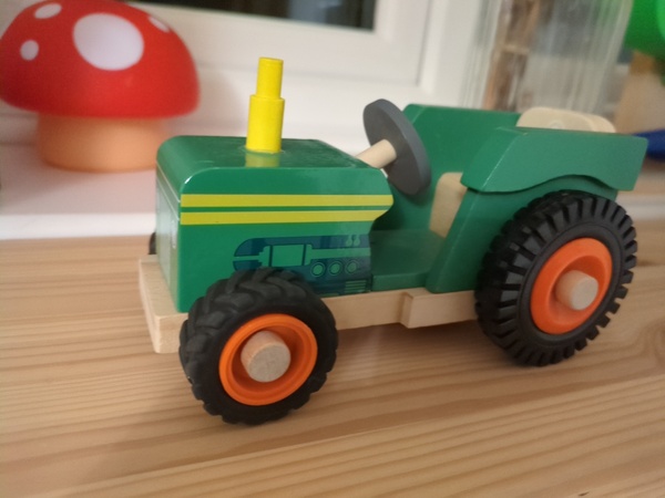 And the tractor has very poor handling characteristics if you're an adult, because all of your weight is over the solid rear axle and the rear tyres have much more grip than the front, so you have to lean forwards to make it steer. For a while I had one of the rear wheels free-wheeling, which makes it steer better, but means it sometimes gets stuck on hills where you can't drive forwards, you can only wheelie to the side, which on balance is worse. I expect it's not as bad for small children because they're a.) not as heavy, and b.) sitting further forwards anyway.