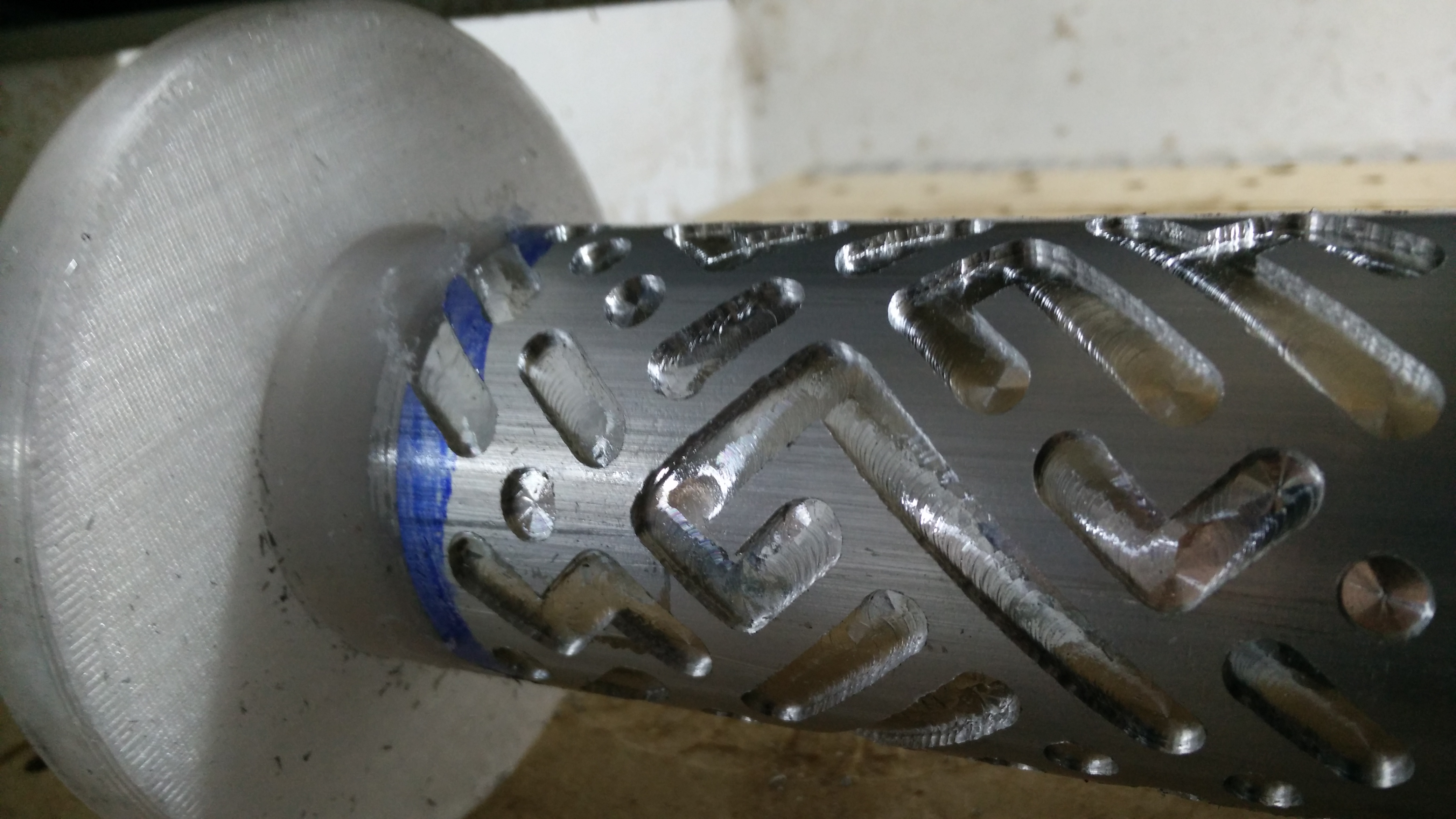 I started by testing out the machine and the toolpaths on a random piece of plastic pipe: