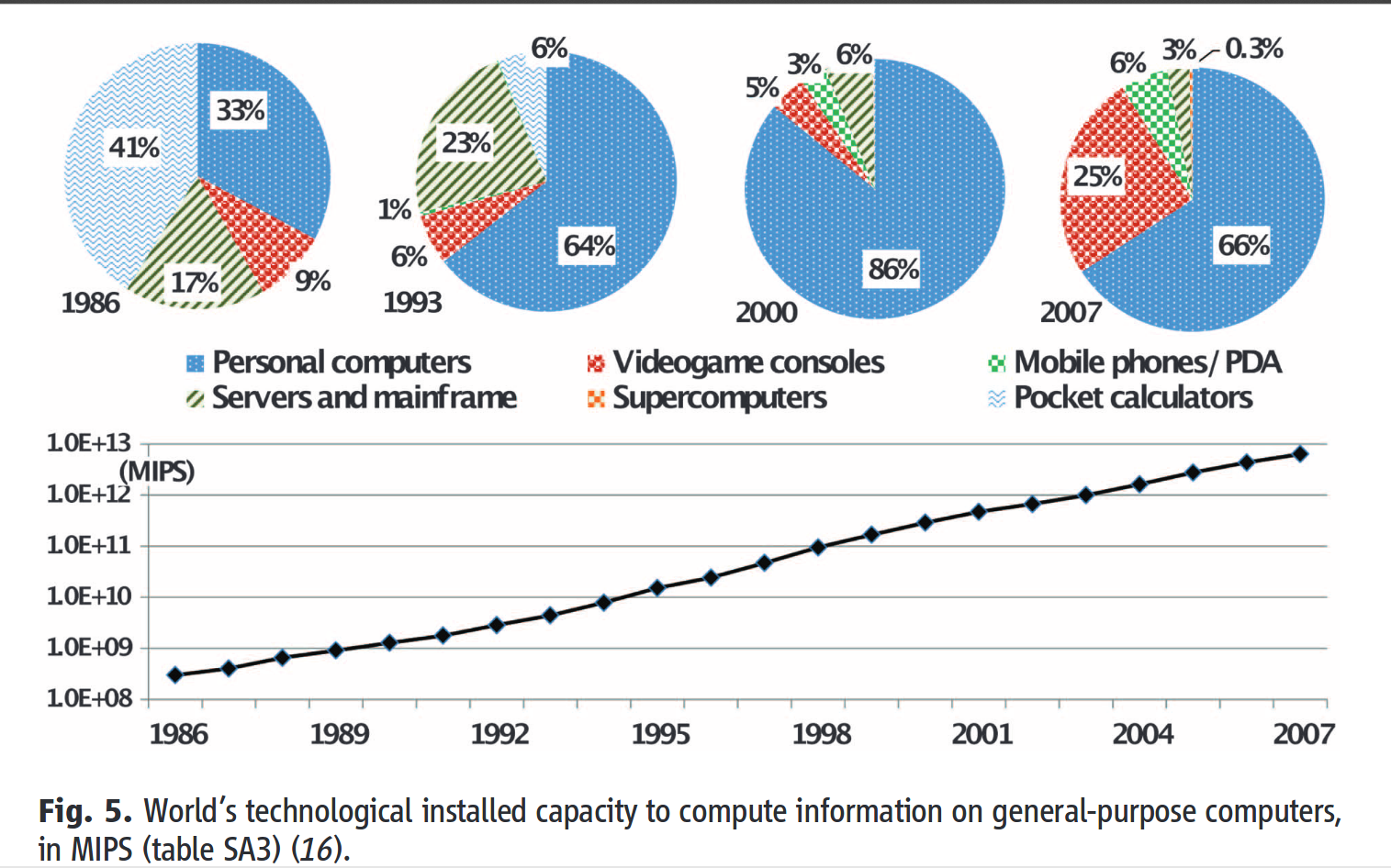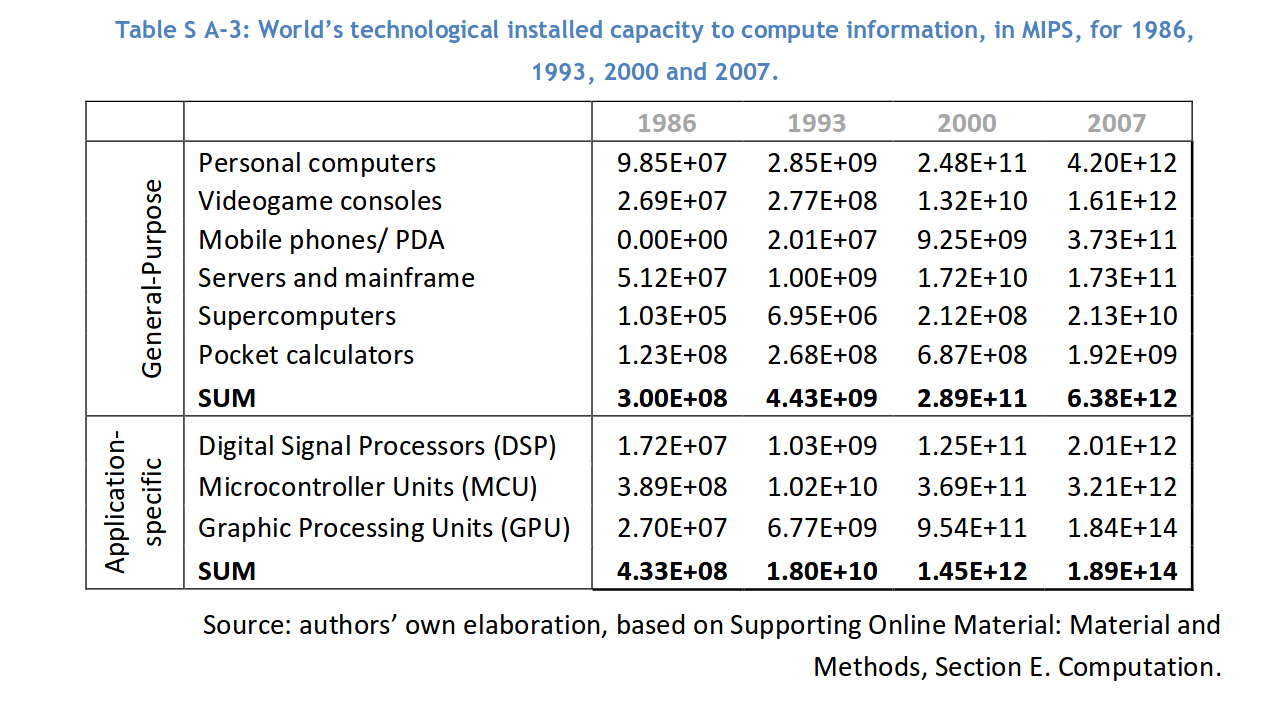 The part of the paper we are most interested in is figure 5, "World's technological installed capacity to compute information on general-purpose computers, in MIPS":