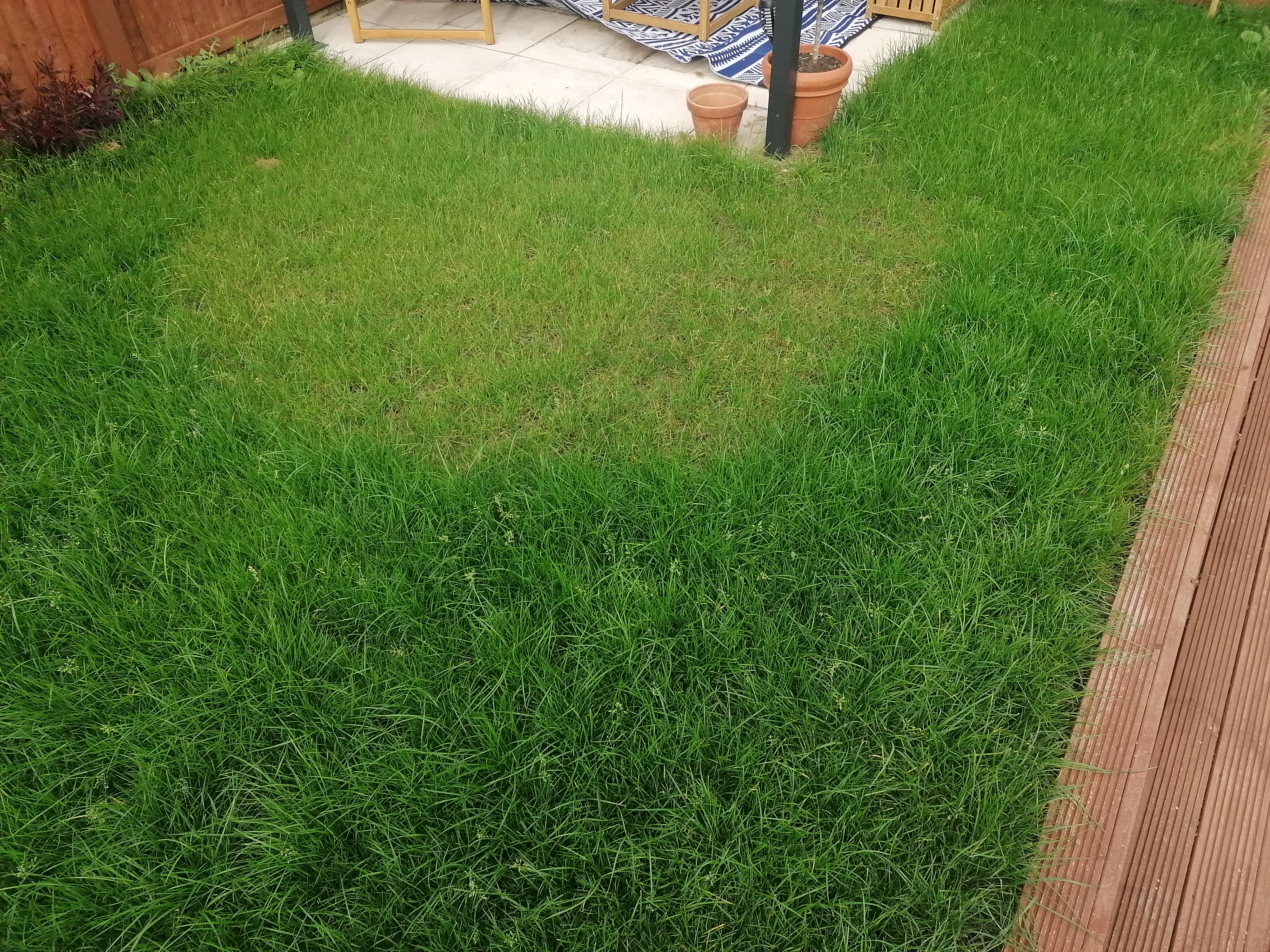 There is a big concrete circle buried underneath the dirt that the grass is growing in, and obviously the ground there doesn't retain moisture as well, or something, so there is a big circle where the grass doesn't grow as well!