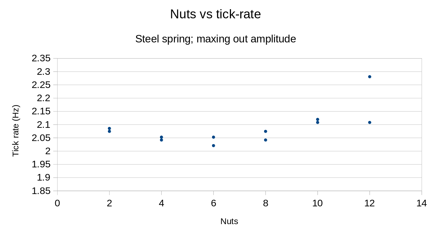 But let's check the tick rate for the data I was able to gather, just to get an idea of a comparison, and then go about either trying to allow more amplitude, or using maybe 1..7 nuts instead of 2..14.