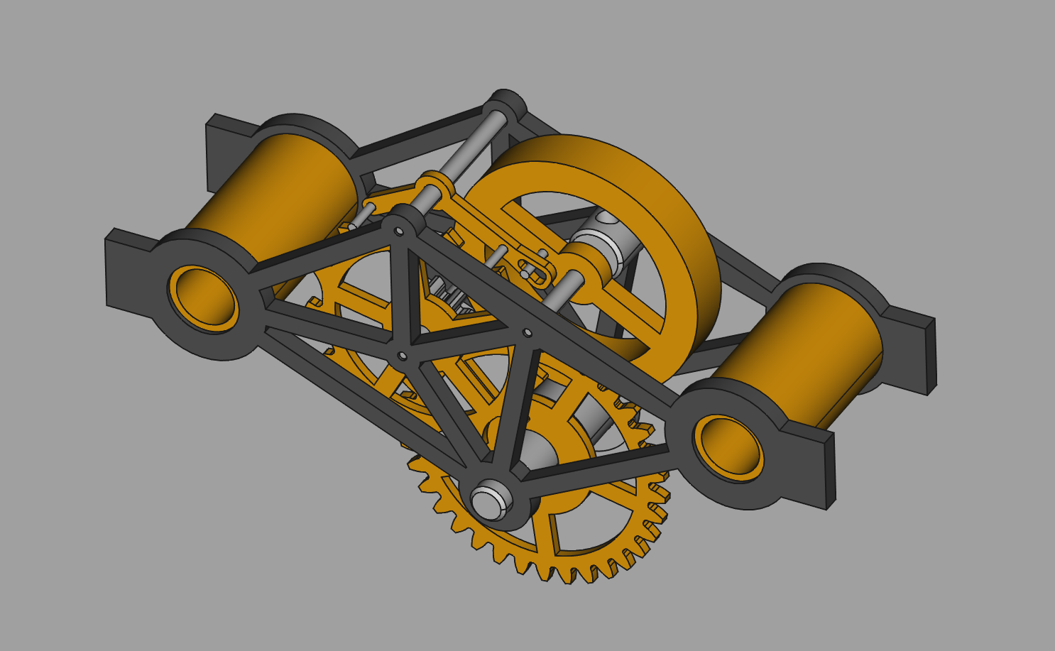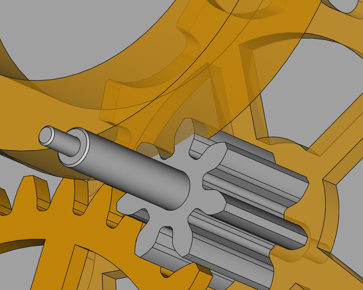 This is mostly the same as the model on the desk, except with a 7-tooth pinion instead of 8-tooth, and corresponding reduction on the barrel gear from 40 teeth to 35 teeth.