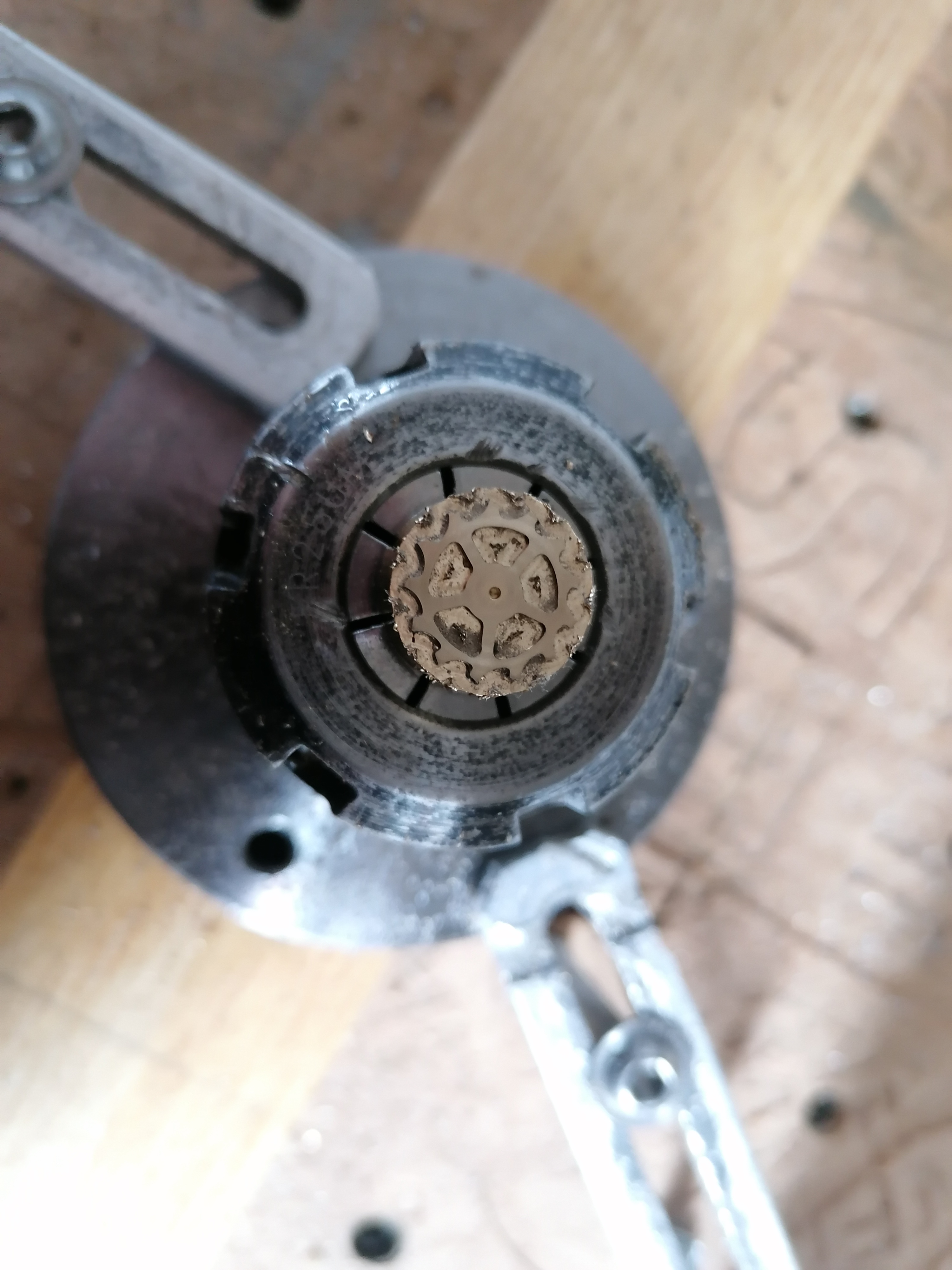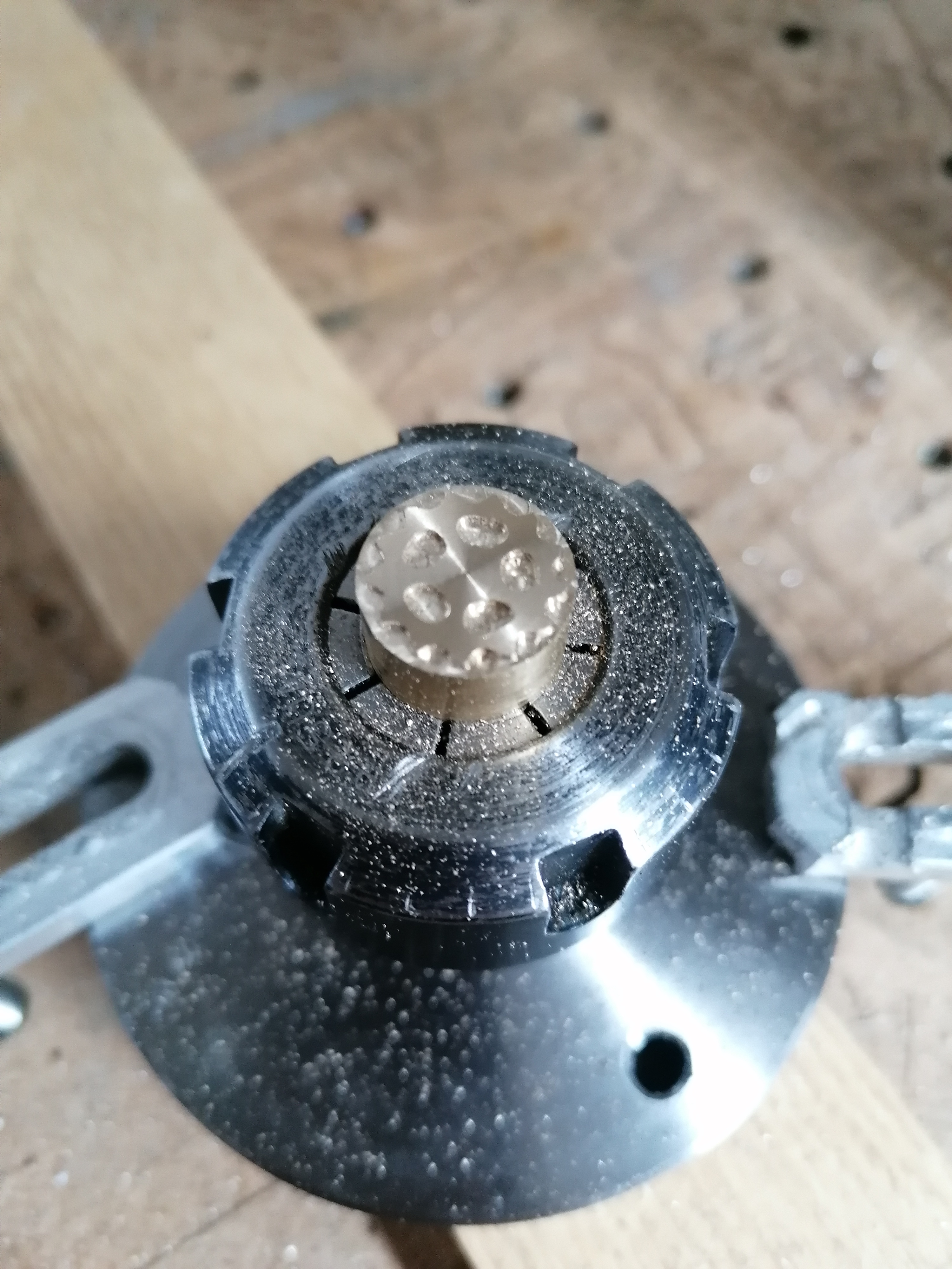 0.1361 mm left to go. So if the first lap has "stock to leave" of 0.1361 mm, then it won't cut anything. 0.1361mm is not a lot, so it's not a million miles away from being able to just leave as is. Would be good to try the other tool though. If I can't get the other tool to work then I'll just make it again but stop after the 1mm end mill. While I'm at it I may as well try to tidy up the corners in the crossing-out, but only after the teeth.