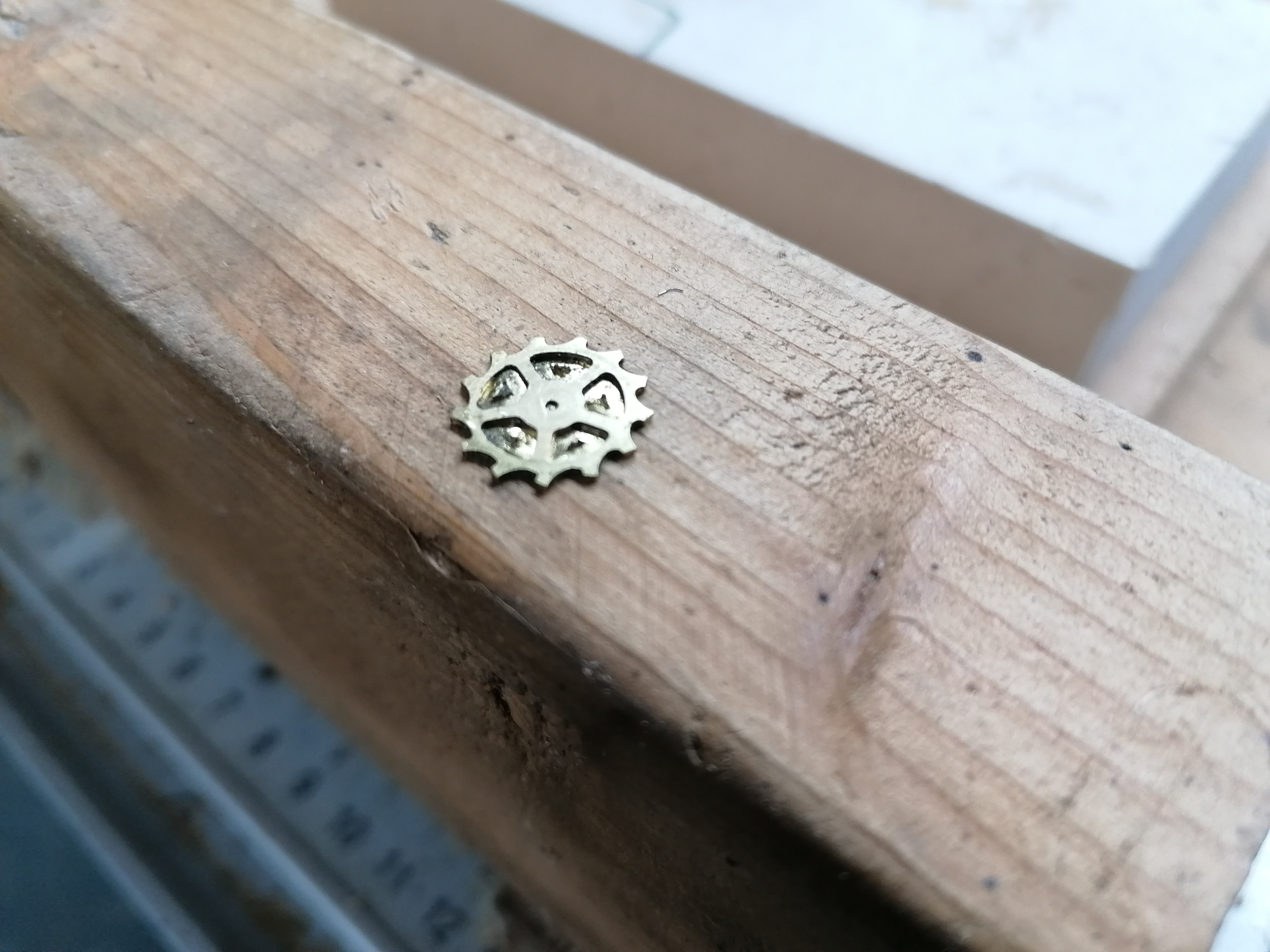 I'm not sure if I should keep making the thin brass parts while I have the workflow in my mind, or whether I should try to make the shaft for the escape wheel first so I can see it spinning in the frame.