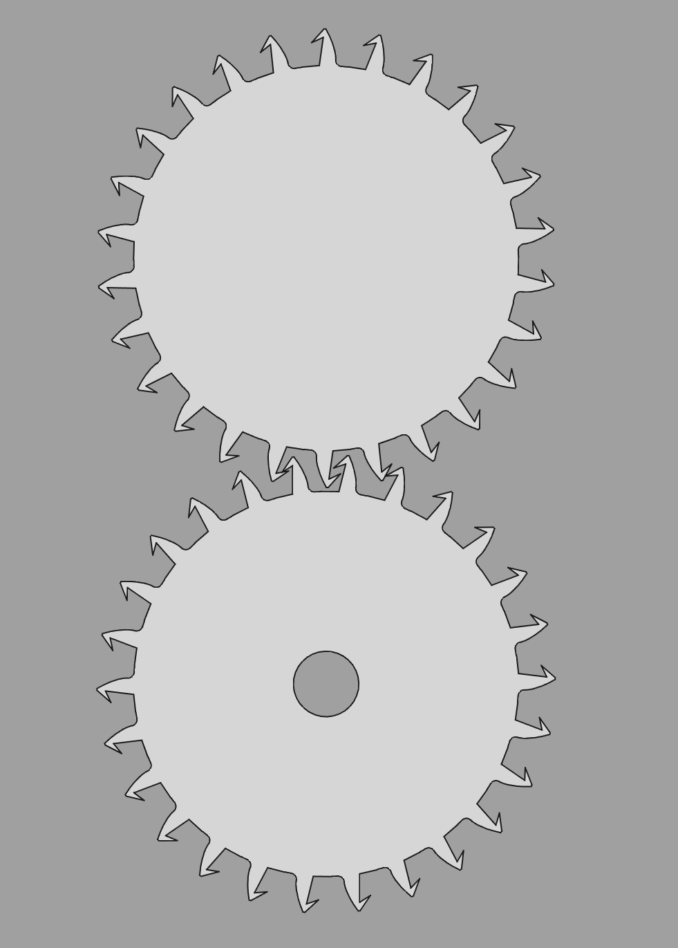 Actually you could do that with Involute gears too, if you angle the back surfaces of the gear so that they won't turn past each other, I think. Let's have a quick look in FreeCAD.