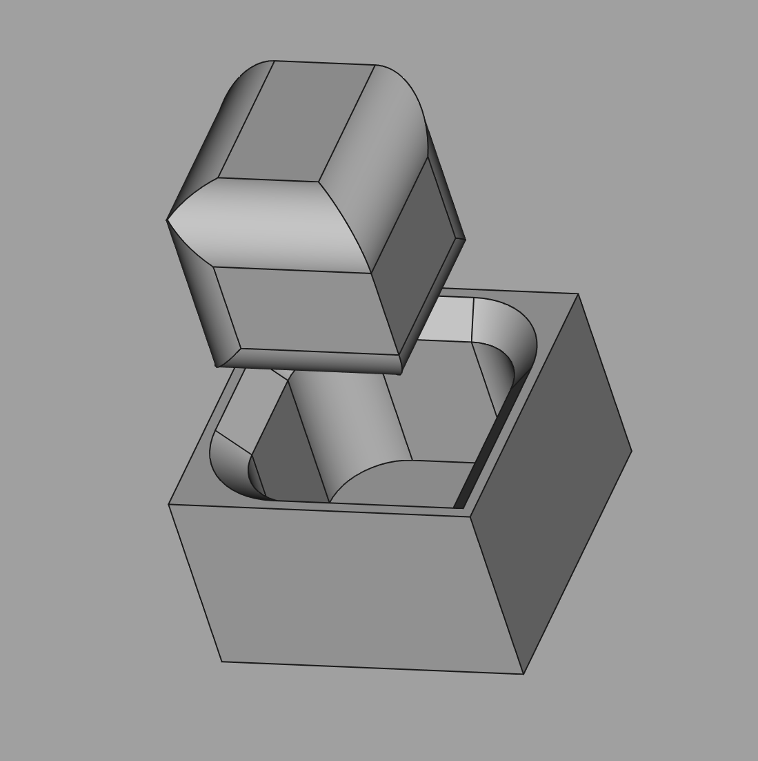 I can sit the "cube" in the top, and shake it, and see if it falls in. And if it does then we're golden. The base is then a piece of piss to CNC (albeit with a little radius in the corner). And then CNC tiles would be nicer, but 3d-printed ones would be easier... The age-old conundrum.