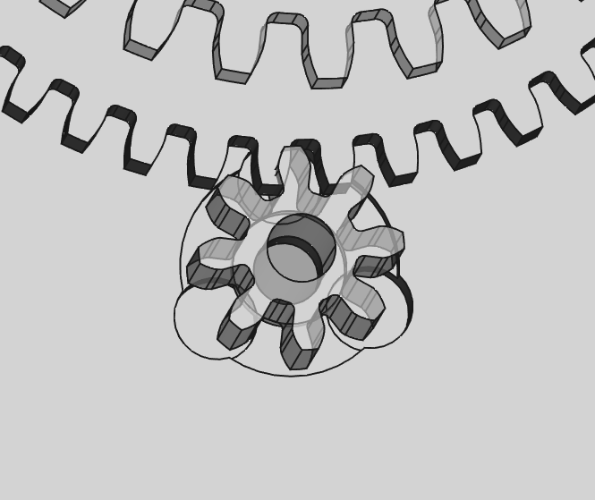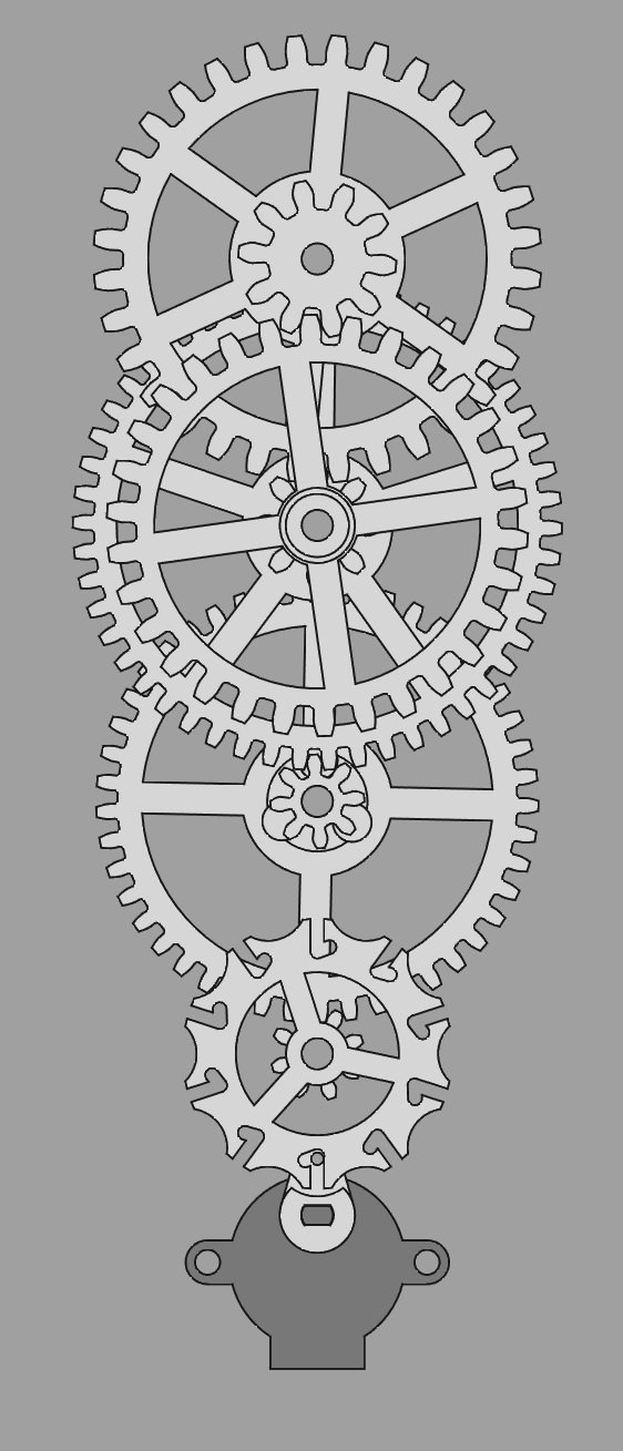 This then meant that the counter-wheel's shaft interfered with the third wheel, so I increased the module of the counter-wheel stuff to 2.1. And now all looks good: