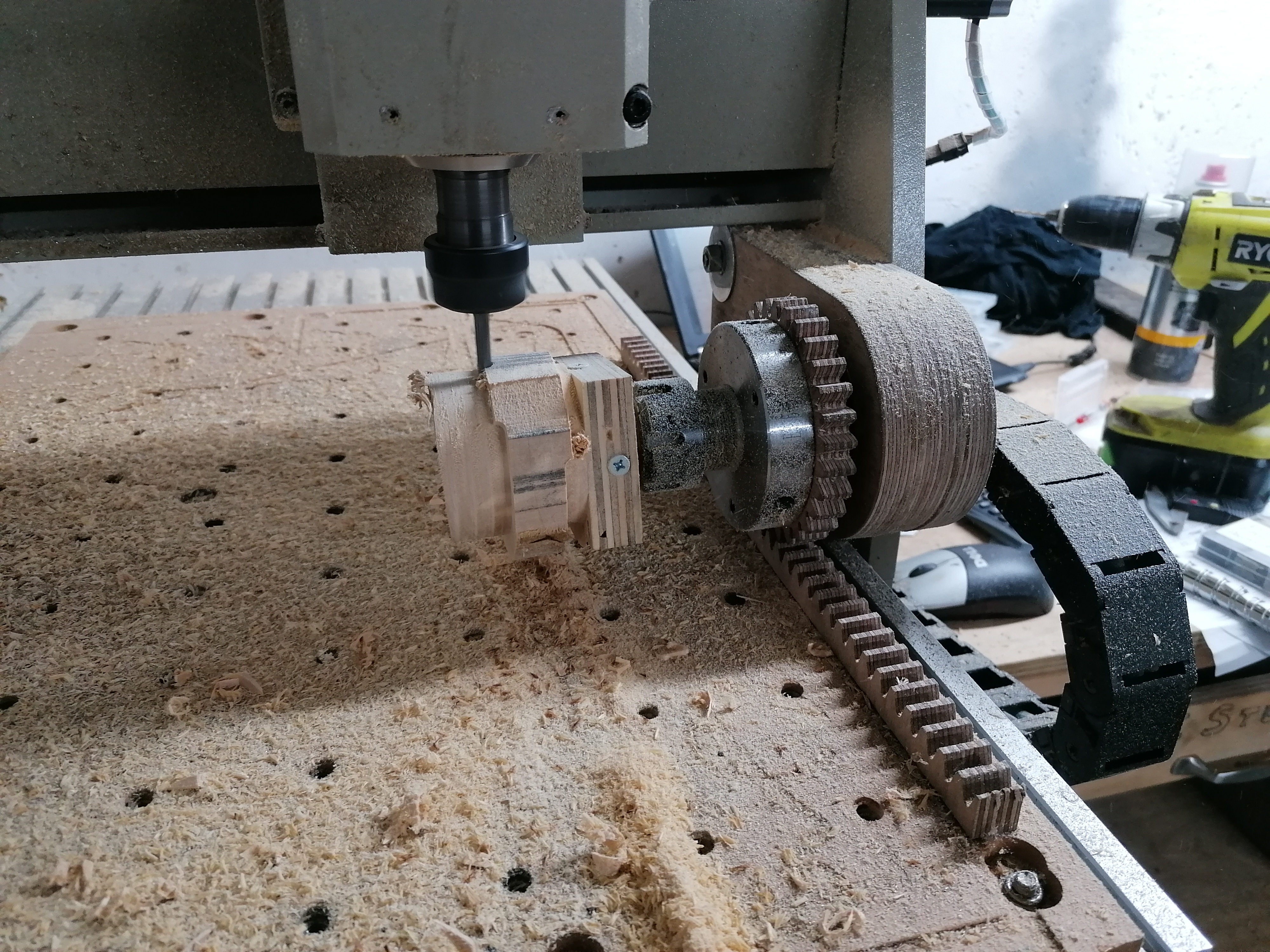 I swapped the second and third wheel back, to make clearance between the second wheel and the third wheel's shaft.