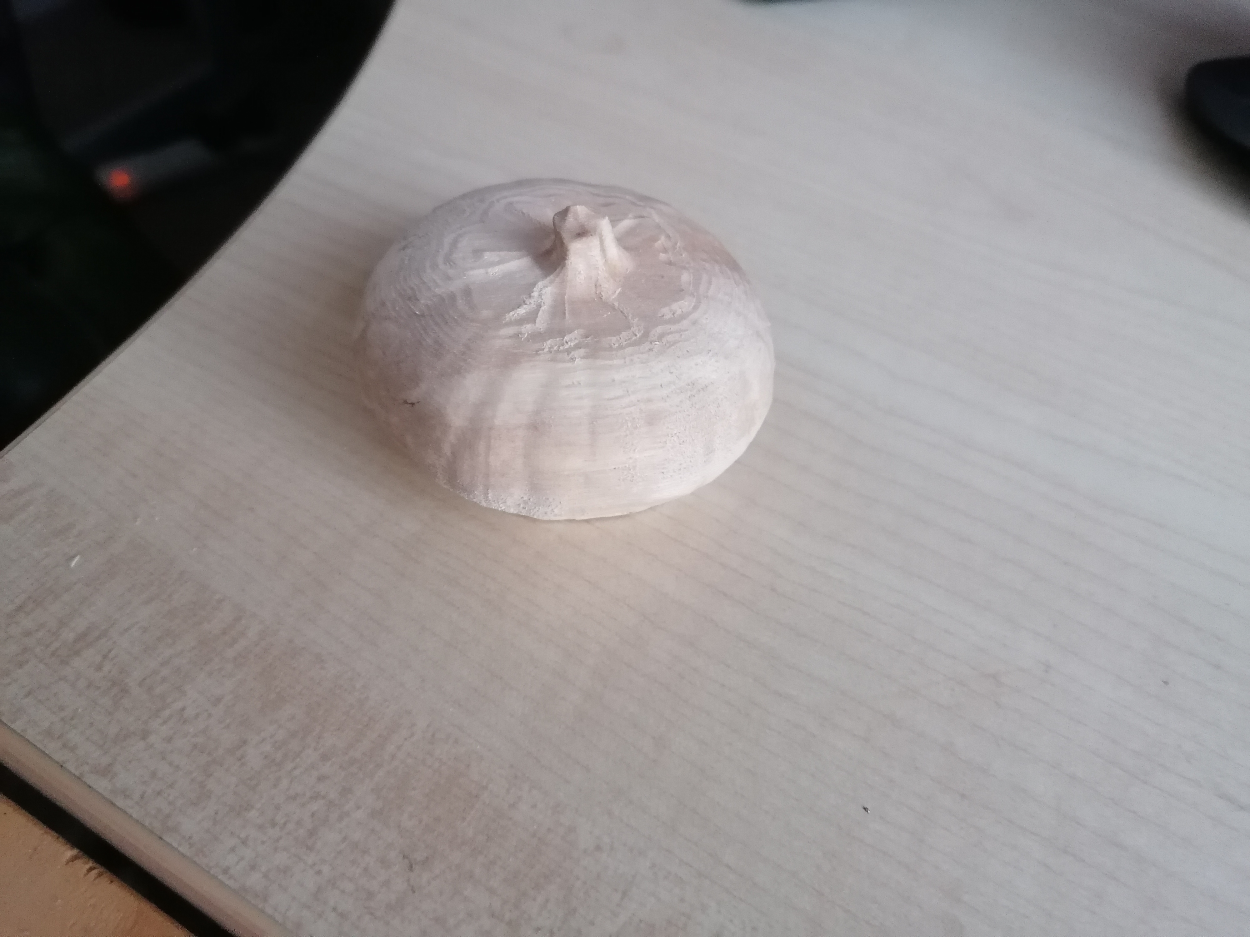 Emma wanted to do some pumpkin carving, and I had the idea to rotary-carve a wooden pumpkin, so I'm doing it. I got the model from https://www.printables.com/model/28400-pumpkin/files