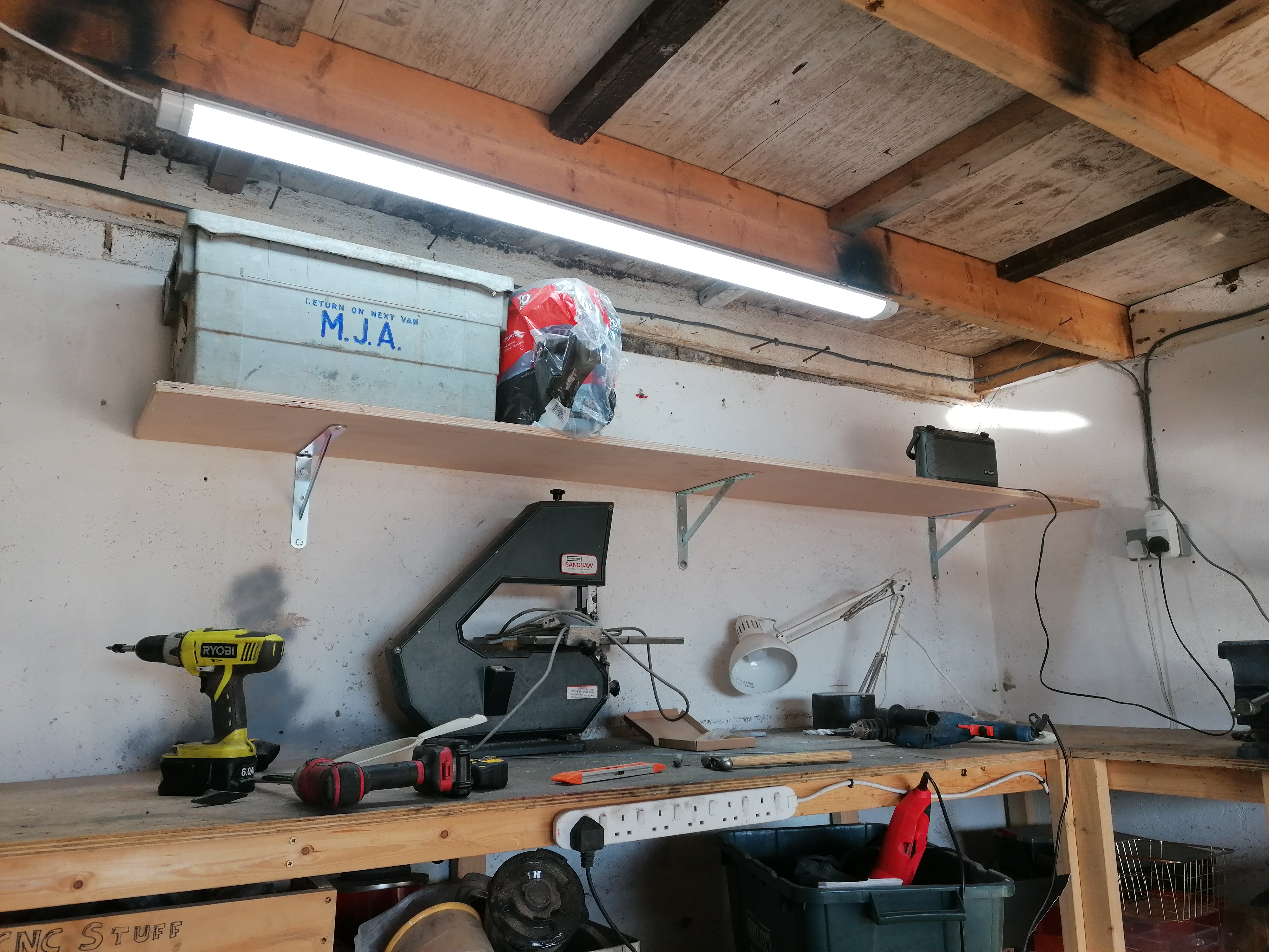 I've put a big shelf up above the workbench:
