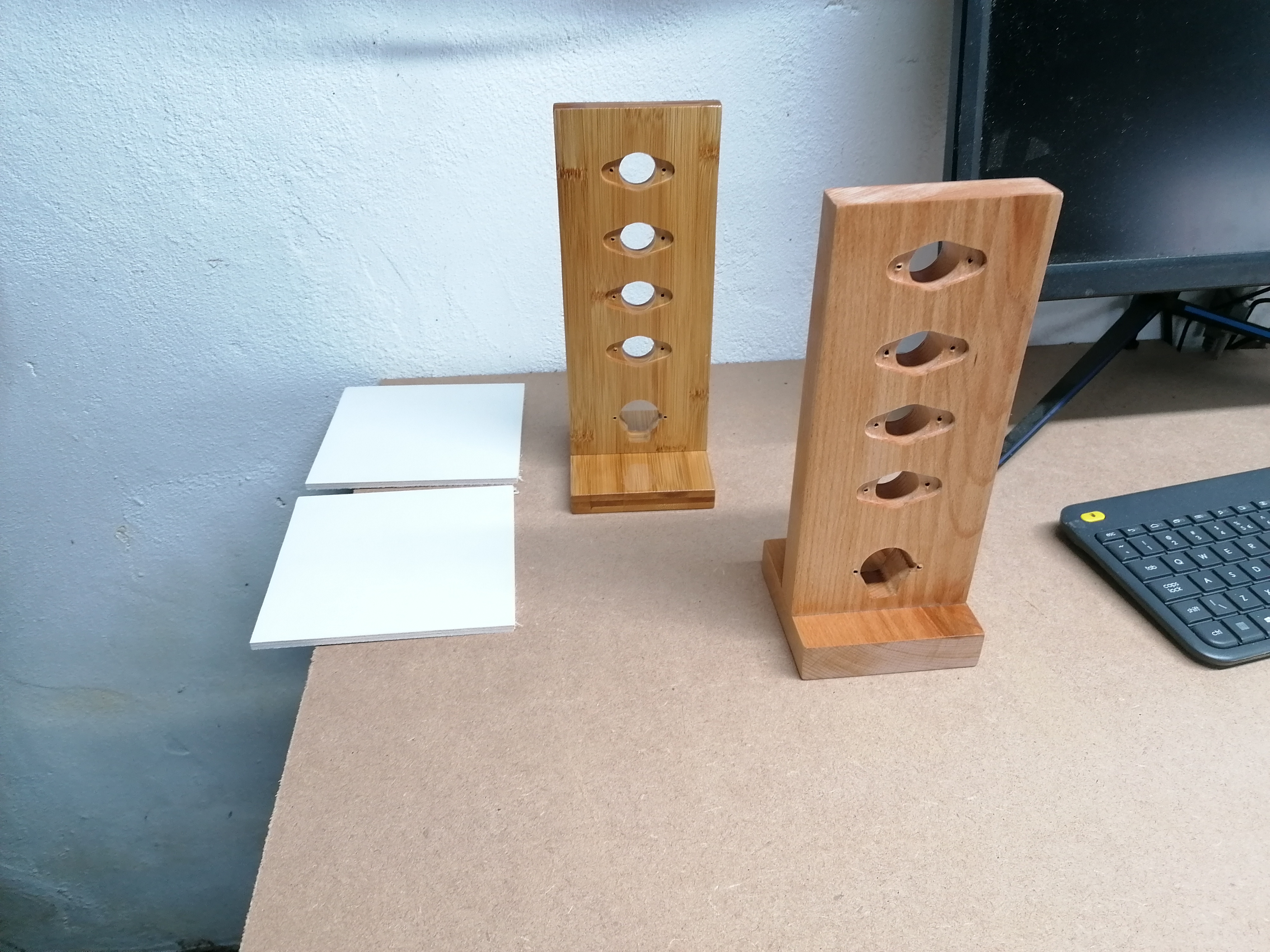 Both frames assembled, and with one coat of lacquer, and 2 coats of white paint on the blanks for the dials: