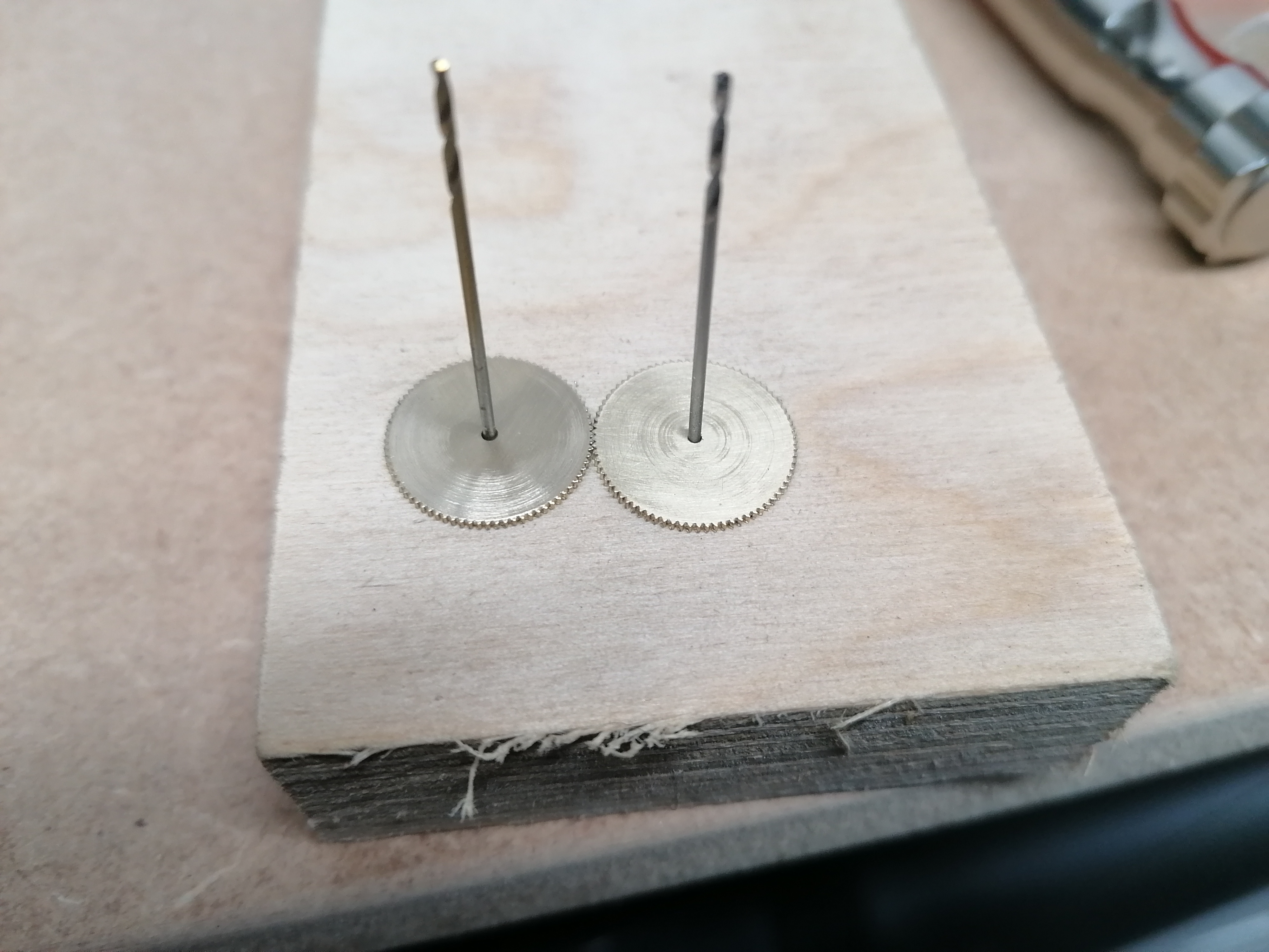 Probably get a few out of that. Now I'll move to the lathe, drill a 1mm bore, and part off discs until I run out of toothed shaft.