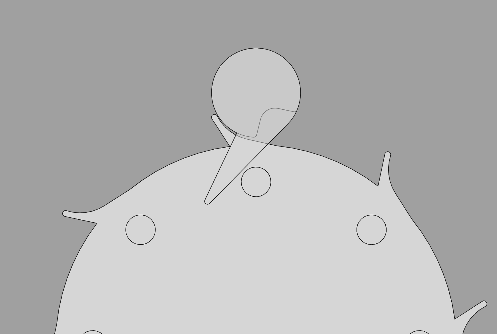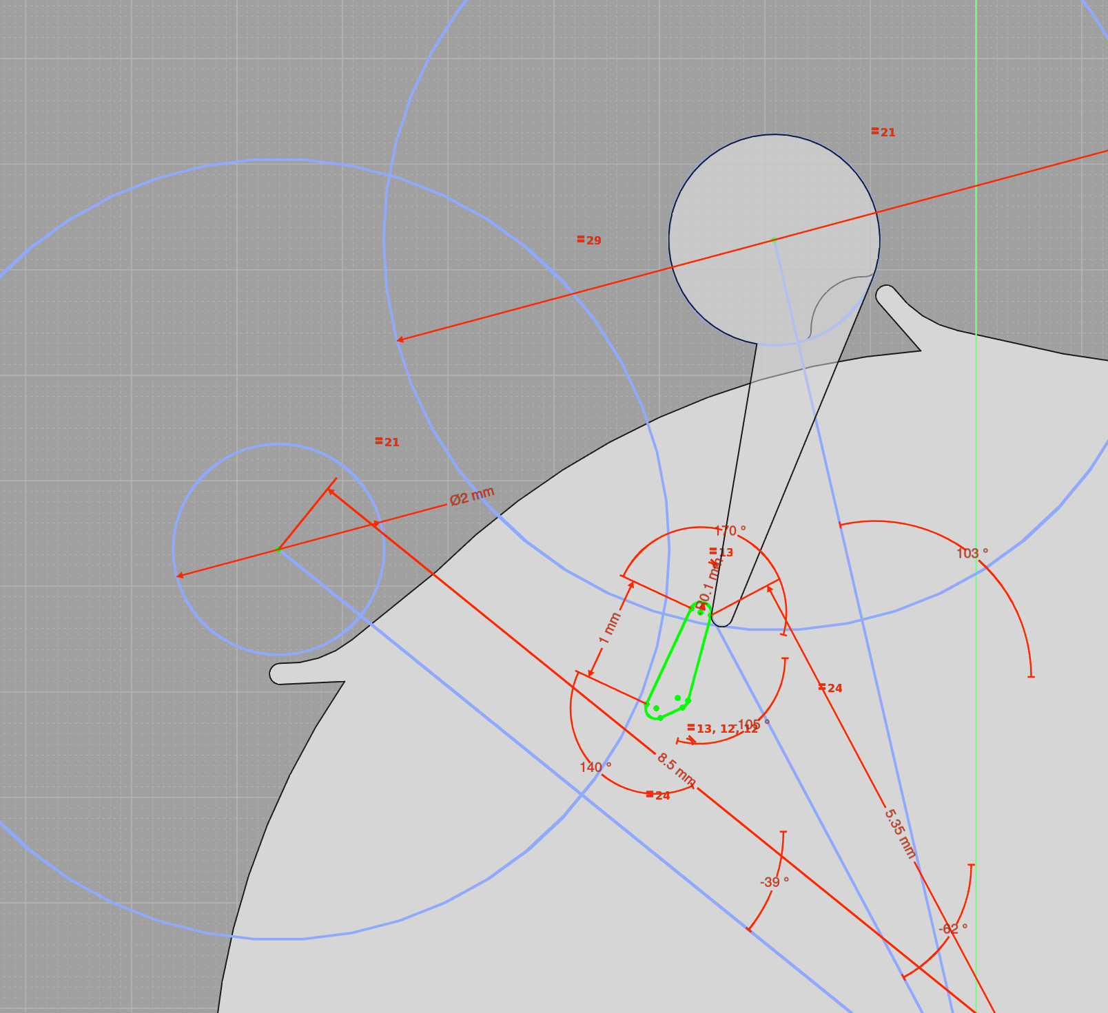 Here it is seen that there is basically zero room for the impulse tooth, so trying to change the impulse tooth isn't going to work. I need to change something elsewhere. For example reduce the radius of the impulse pallet.